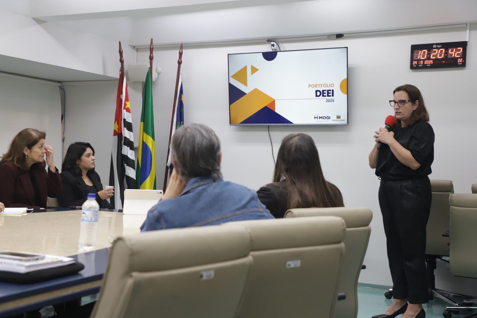 A diretora do Departamento de Educação Especial e Inclusiva (DEEI), Claudia Regueiro, foi a responsável por apresentar os dados do setor e detalhar a atuação da unidade. O DEEI coordena, além da Escola Clínica TEA, a Escola Municipal de Educação Especial (EMESP), o Pró-Escolar e os Polos de Atendimento Educacional Especializado (AEE), entre outros equipamentos e programas.