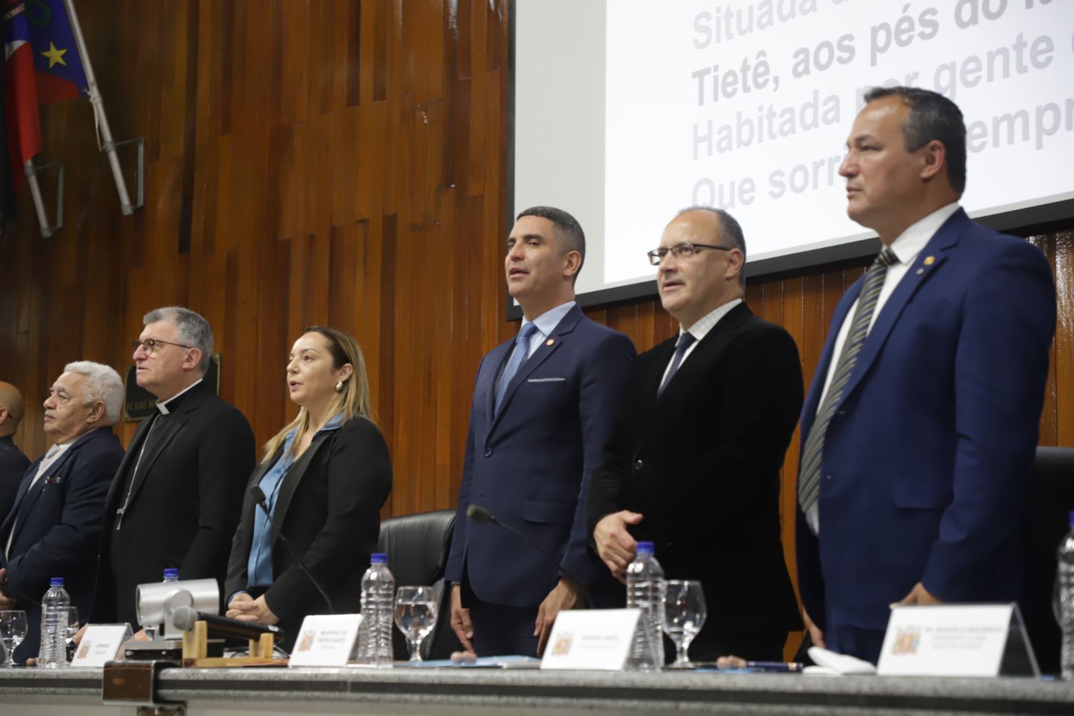Os trabalhos legislativos foram conduzidos pelo vereador Johnross (PRD), com o vereador Maurinho do Despachante (PRD) na primeira secretaria. Além deles, ocuparam a mesa diretiva a secretária Municipal de Assistência Social, Daniela Mariano — representando a prefeita de Mogi, Mara Bertaiolli (PL) —, o secretário da Família, Cidadania e Segurança Alimentar da prefeitura de Osasco, Marcelo Couto, o deputado estadual Rogério Santos (MDB), o presidente da OAB Mogi das Cruzes, Marcelo Inocêncio, o bispo diocesano de Mogi das Cruzes, dom Pedro Luiz Stringhini, o presidente do Conselho dos Pastores e Obreiros de Mogi das Cruzes, José Miraídes Penha, Claudio Rodrigues, coordenador Especial da Primeira Infância da Prefeitura de Mogi das Cruzes, Rose Santiago, diretora Executiva do CERVI (Centro de Reestruturação da Vida) e o vereador pastor Osvaldo Santos (REP).