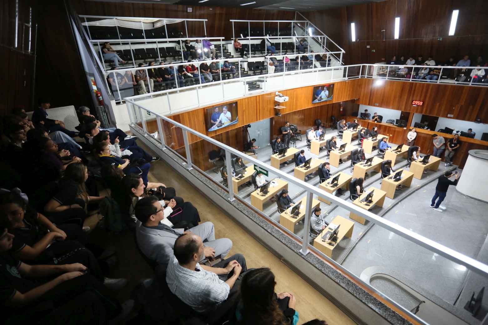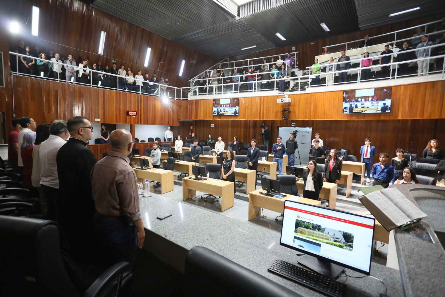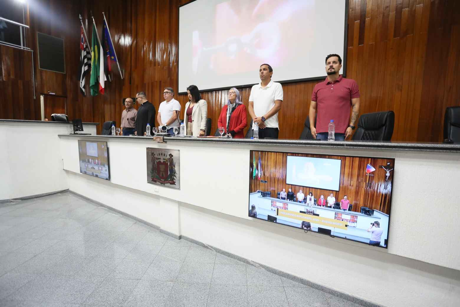 Na manhã desta quinta-feira (16), a Câmara Municipal de Mogi das Cruzes foi palco de uma sessão especial do Parlamento Estudantil, iniciativa que reúne alunos do Ensino Médio de escolas públicas e particulares do município para apresentar propostas legislativas e debater ideias voltadas ao bem comum. Na sessão, que simulou uma reunião ordinária, os jovens vereadores ocuparam os assentos dos parlamentares e apresentaram projetos que abordam desde educação e meio ambiente até saúde mental, tecnologia e mobilidade urbana.