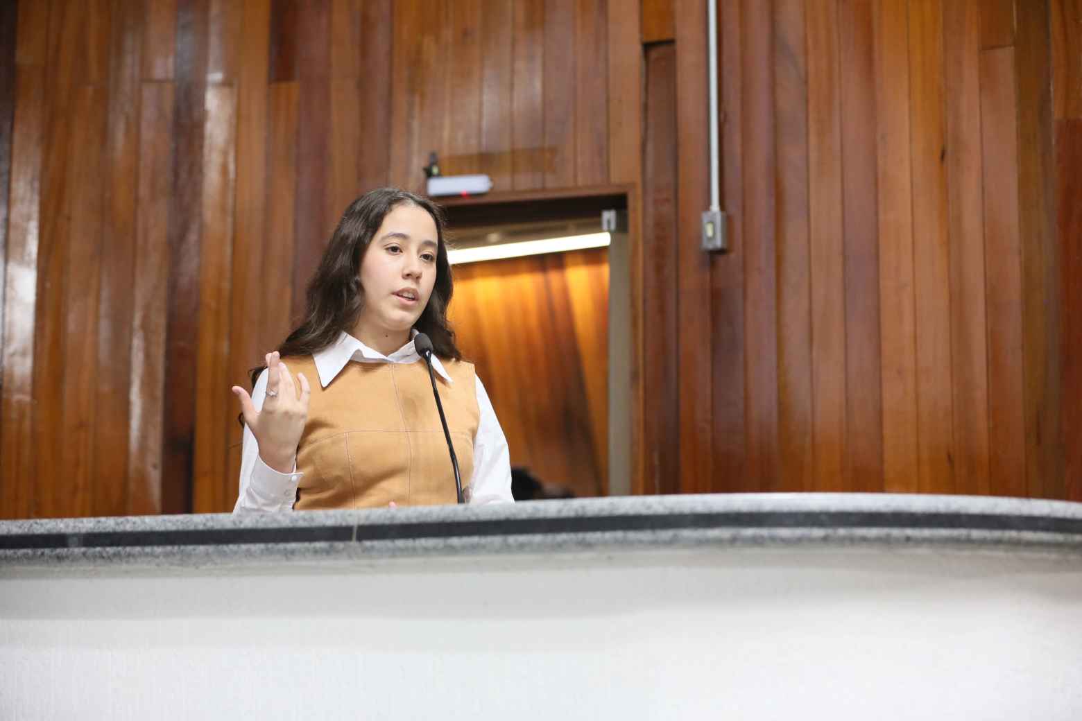 Nathália Fernandes Bastianelli, do Colégio Objetivo, apresentou o PROMAETEC – Programa Municipal de Atração de Empresas de Tecnologia, uma iniciativa para fortalecer o ecossistema de inovação em Mogi das Cruzes. “É um projeto que não fala apenas de tecnologia, mas de futuro, juventude e oportunidades reais para o nosso município. Uma proposta que prepara Mogi das Cruzes para o amanhã com responsabilidade”, defendeu.