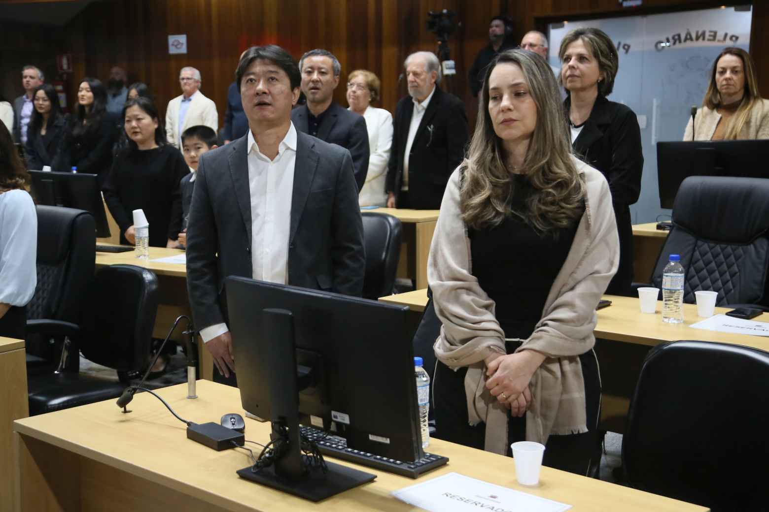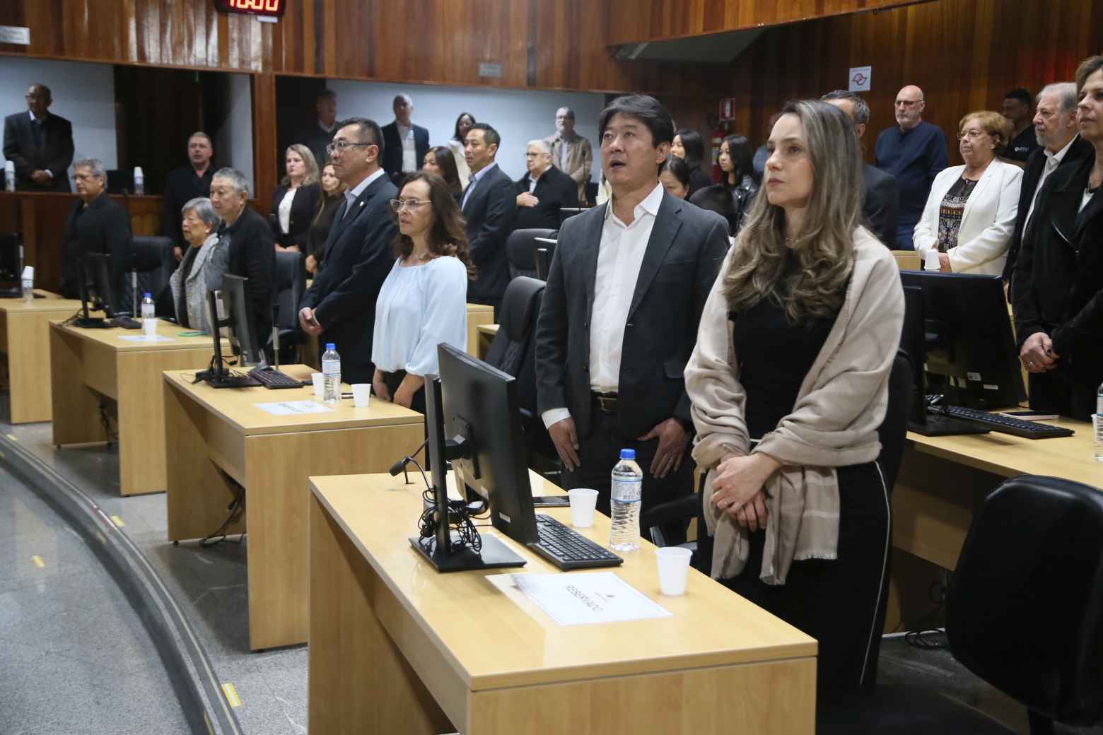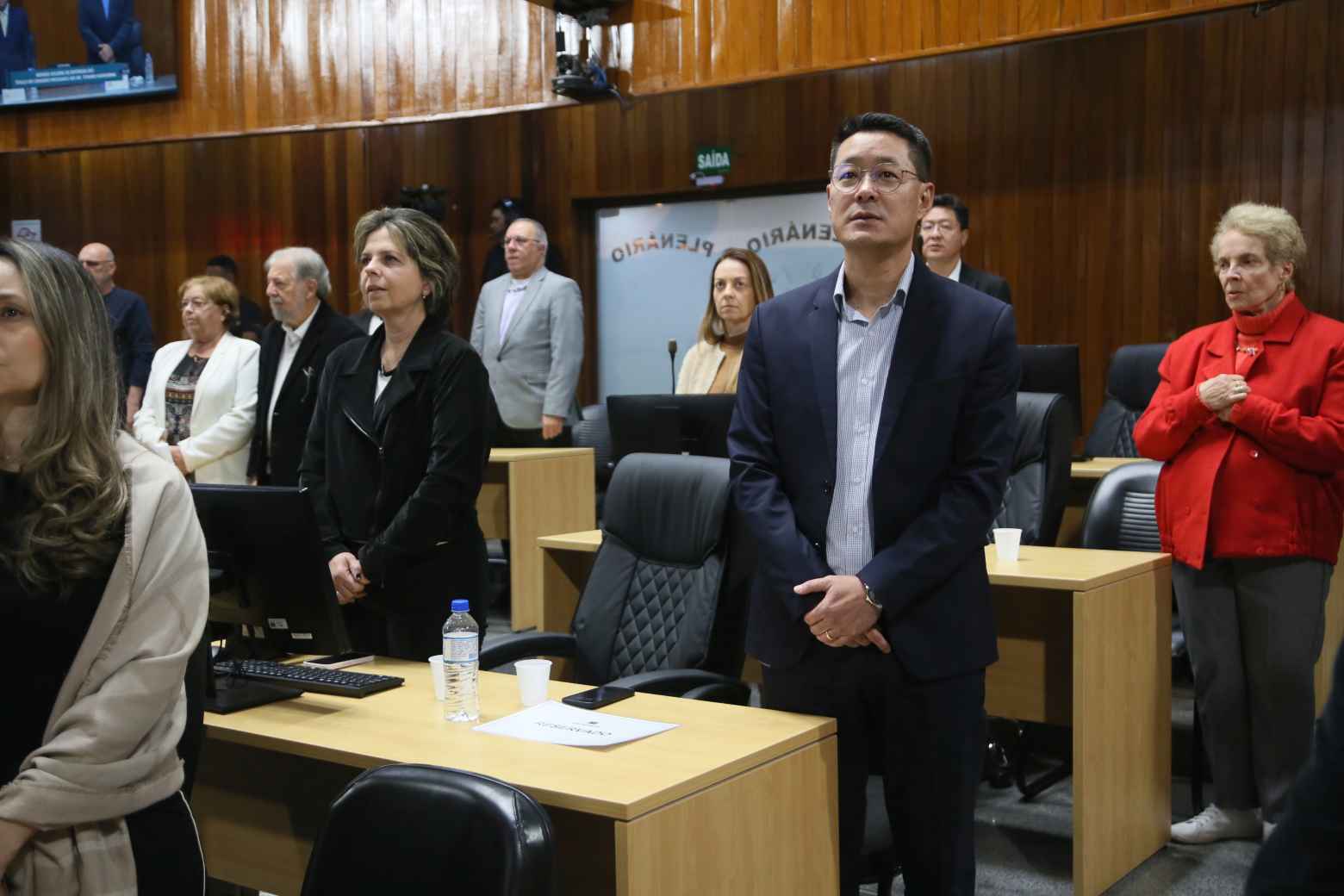 Também participaram da cerimônia os vereadores Pedro Komura (União Brasil) e Vitor Emori (PL).
