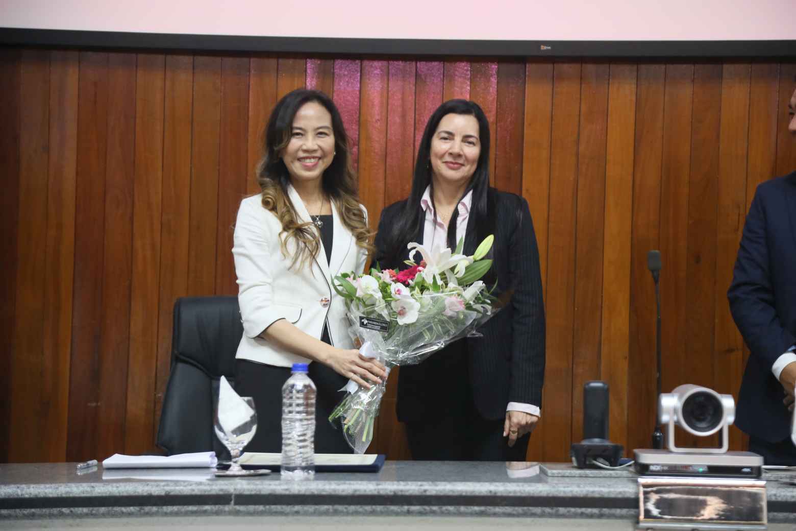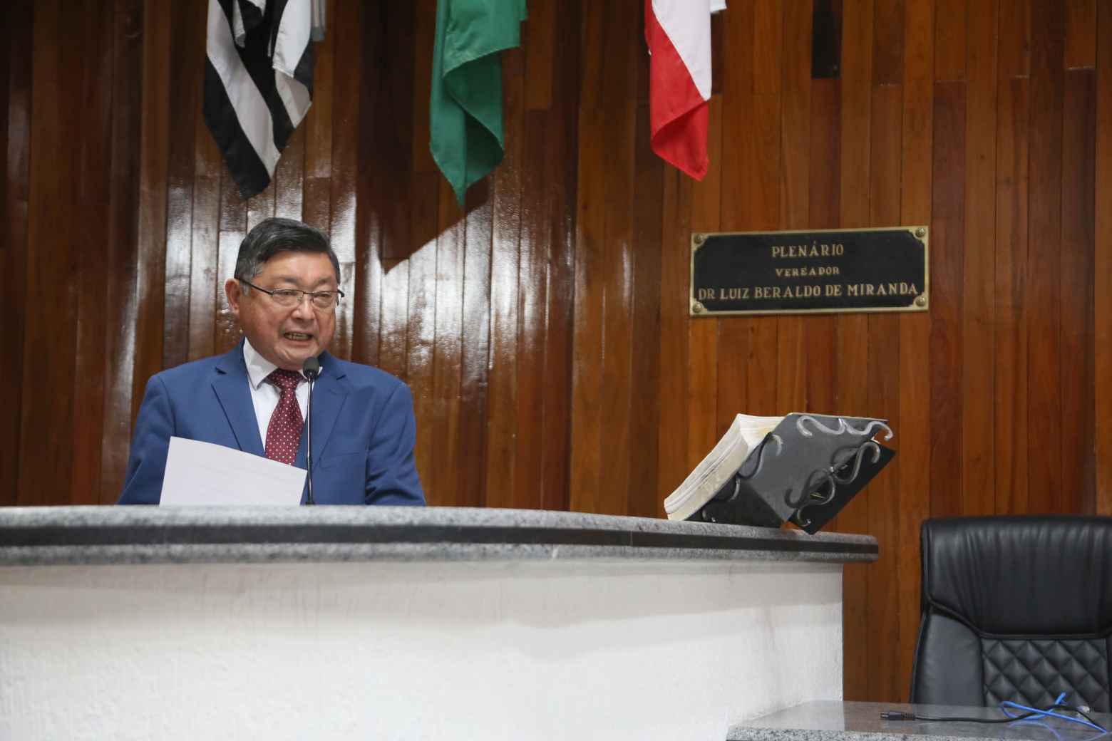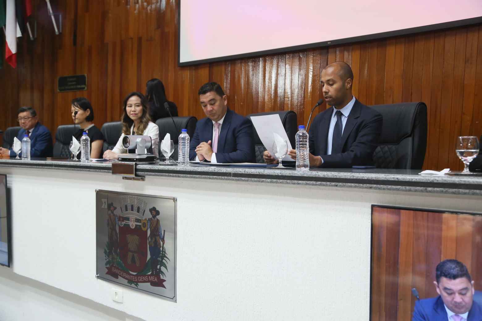 A cerimônia contou ainda com o vereador Edu Ota (Pode) na presidência da sessão e com o vereador Johnny da Inclusão (Avante) na primeira secretaria.