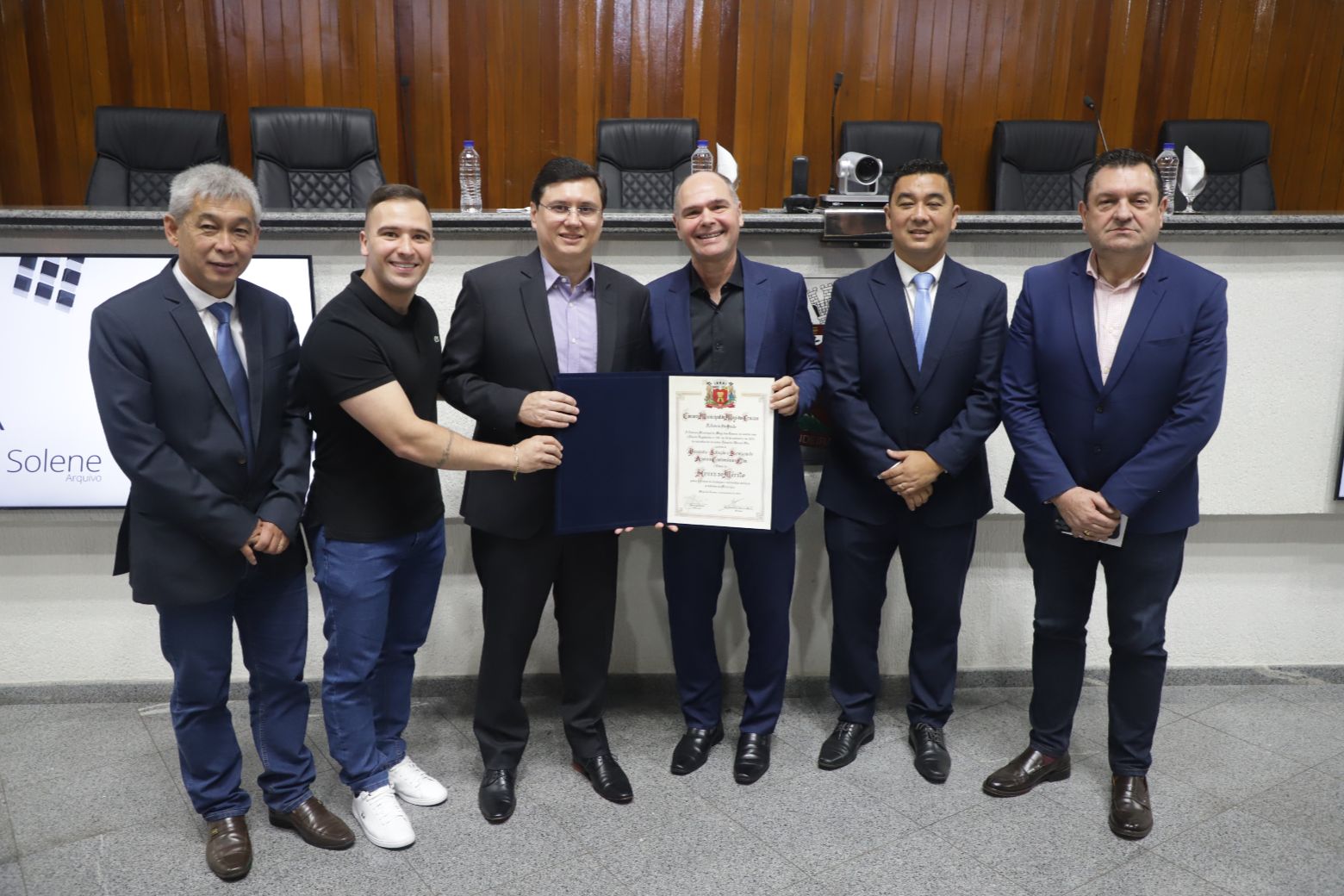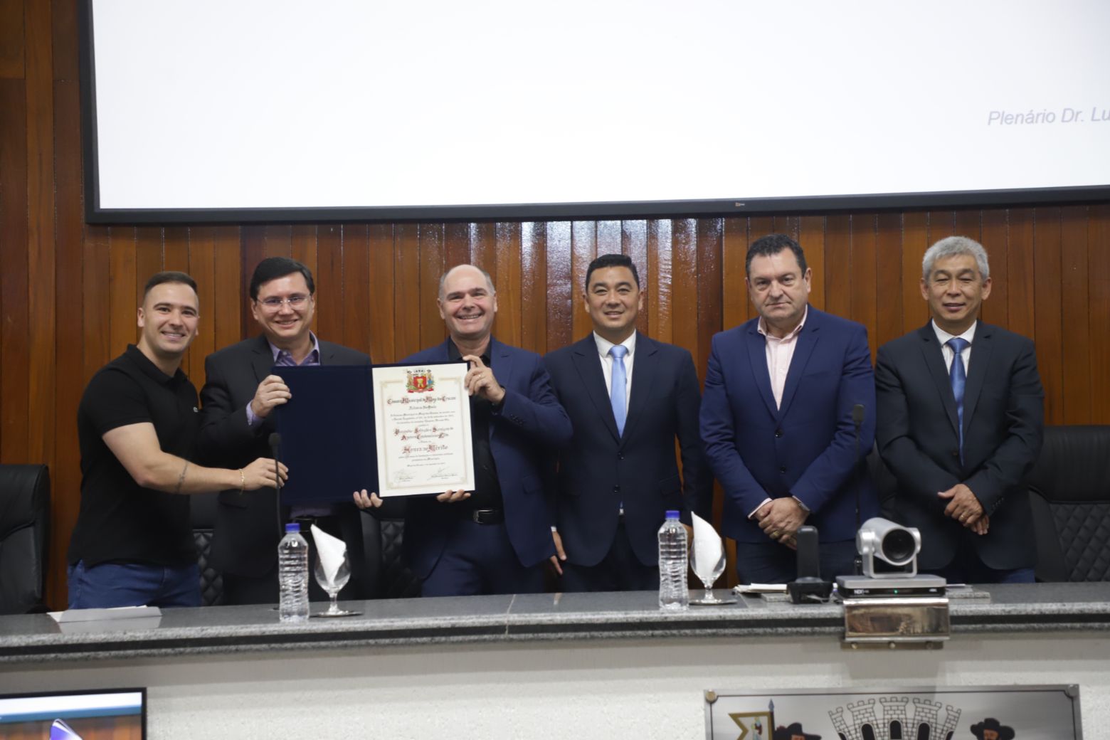 A Câmara Municipal de Mogi das Cruzes realizou, nesta quarta-feira (26), sessão solene para a entrega do título de “Honra ao Mérito” à Prosindic – Solução e Serviços de Apoio a Condomínios Ltda., em reconhecimento aos seus 10 anos de fundação. A homenagem foi proposta pelo vereador Prof. Edu Ota (Pode) e aprovada por meio do Projeto de Decreto Legislativo nº 60/2025.