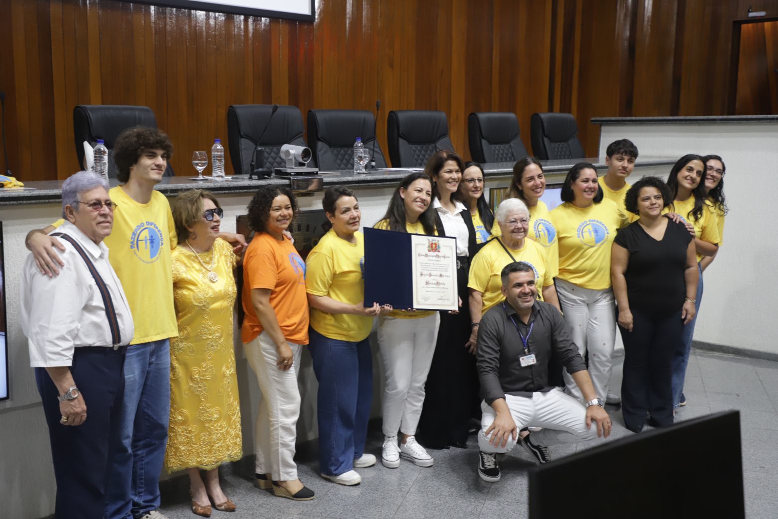 A Câmara Municipal de Mogi das Cruzes outorgou, em sessão solene nesta segunda-feira, 15, título de “Honra ao Mérito” ao programa de atendimento social "Fazendo a Diferença", que funciona na Rua Benedicto Ferreira Lopes, km 2, no Jardim Maricá, na Serra do Itapeti. Realizada no plenário vereador doutor Luiz Beraldo de Miranda, a homenagem é uma iniciativa da vereadora Priscila Yamagami (PP) e obedece ao Decreto Legislativo n. ° 283/2025.