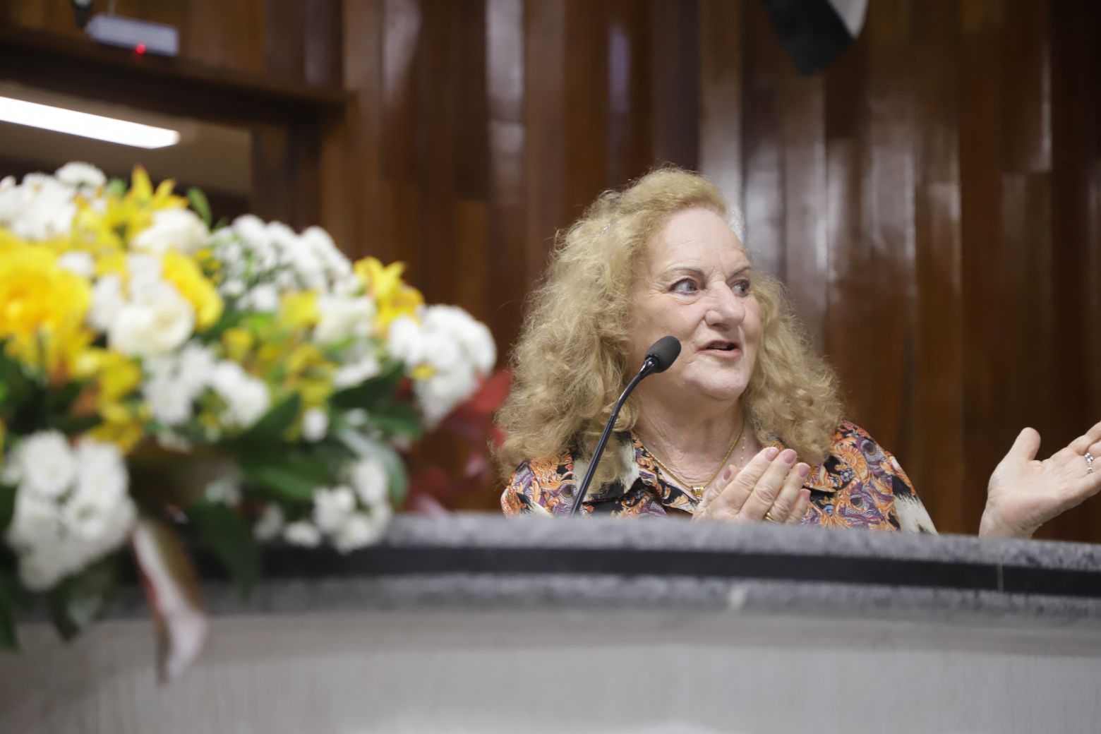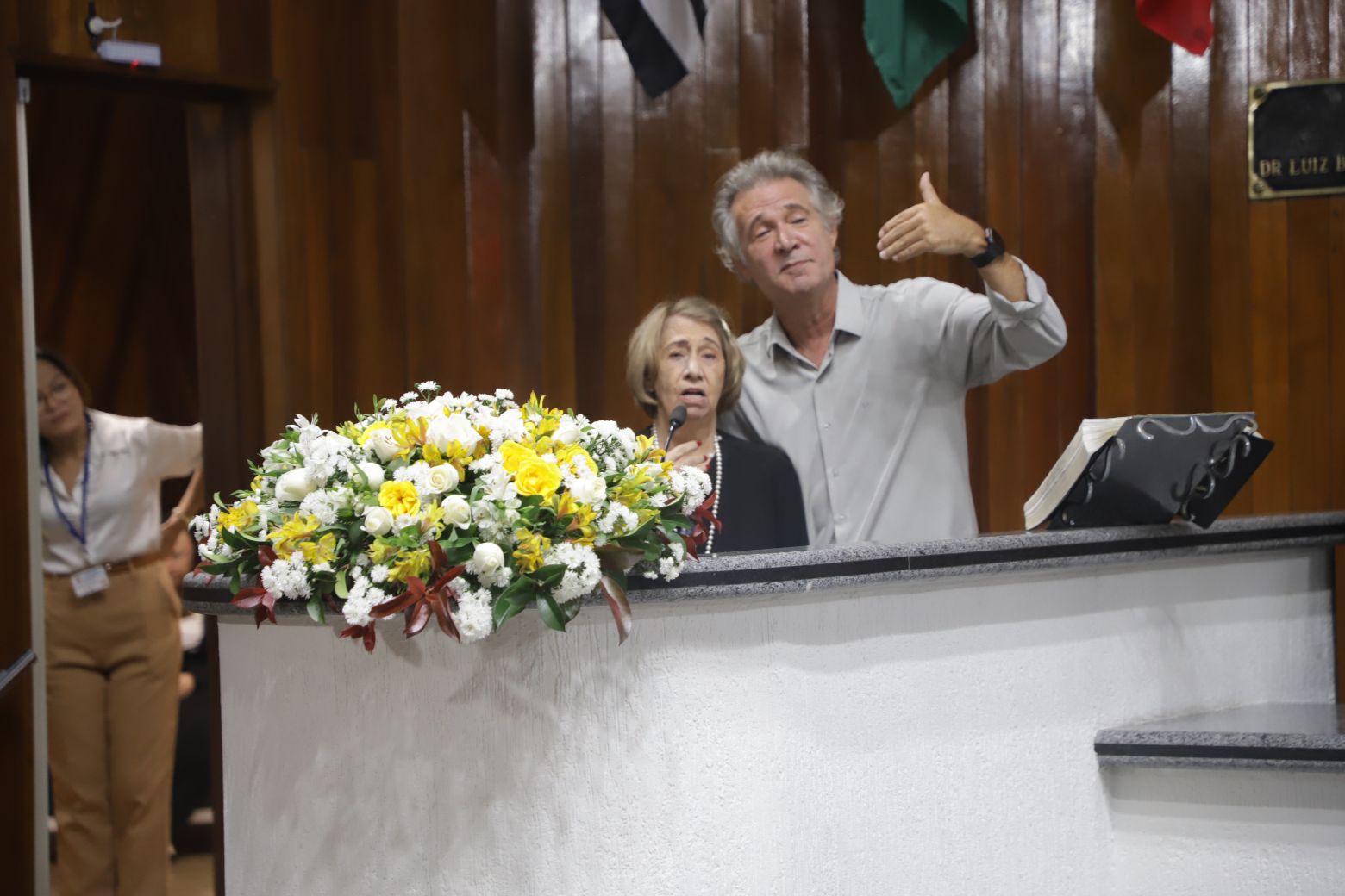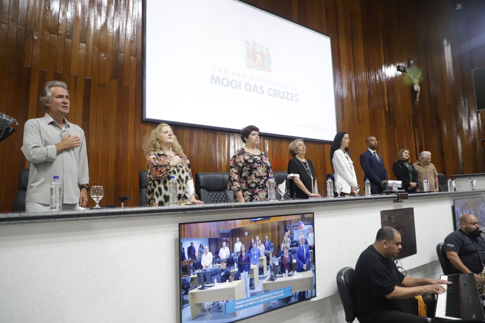 Os trabalhos legislativos foram conduzidos pela vereadora Fernanda Moreno na presidência da solenidade, com o vereador Johnny na primeira secretaria. Também compuseram a mesa diretiva, além da própria homenageada, Teresa Christina Vaz, secretária adjunta de Cultura, — representando a prefeita Mara Bertaiolli (PL)—, Ana Maria Barbosa, conhecida como Ana Marb, artista plástica e presidente da Associação Búlgara do Brasil, Rose Cardoso, presidente do Lions Clube Itapety, João Anatalino Rodrigues, presidente da Amhal (Associação Mogicruzense de História, Artes e Letras), e Nelson Freitas, ator e filho da homenageada.