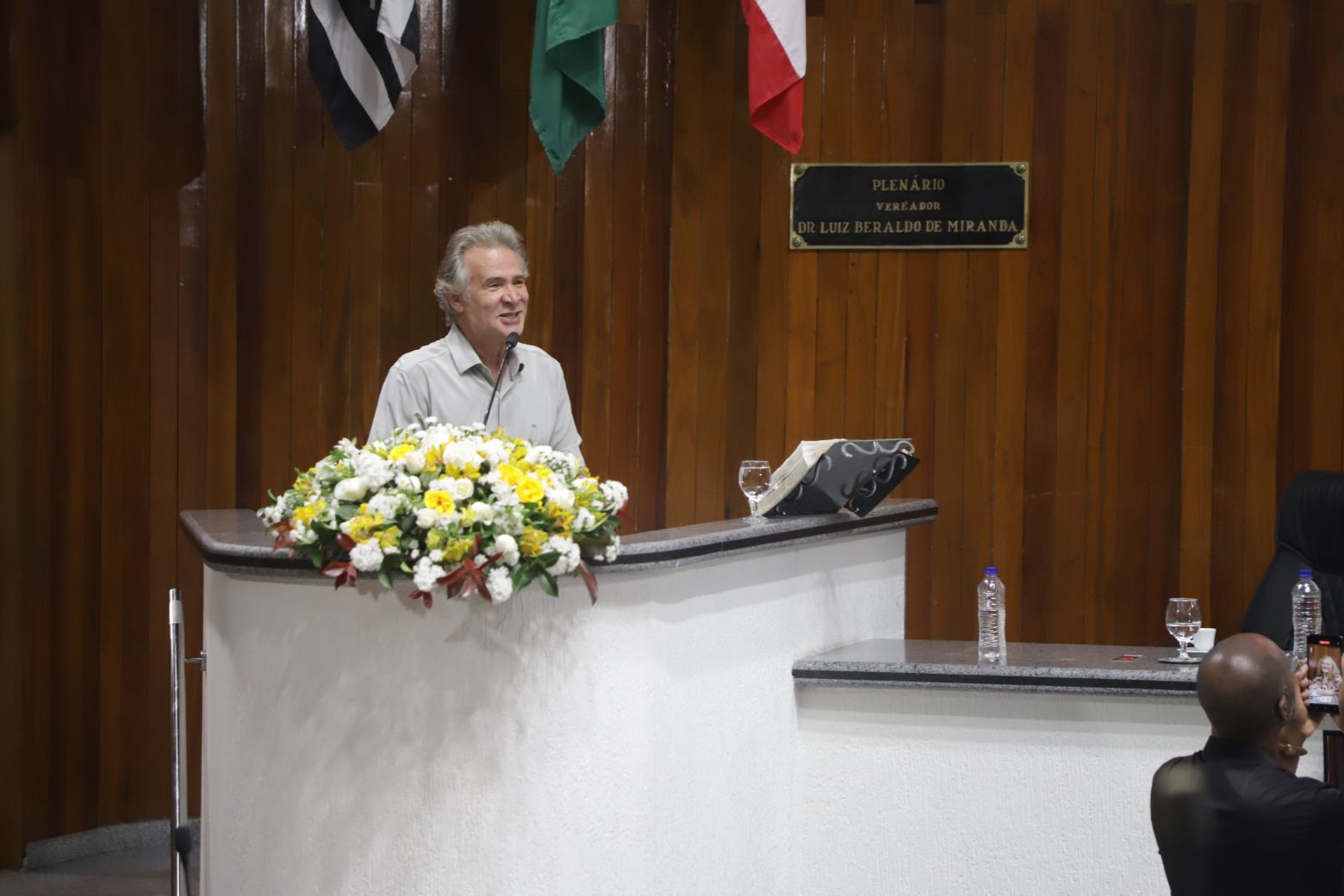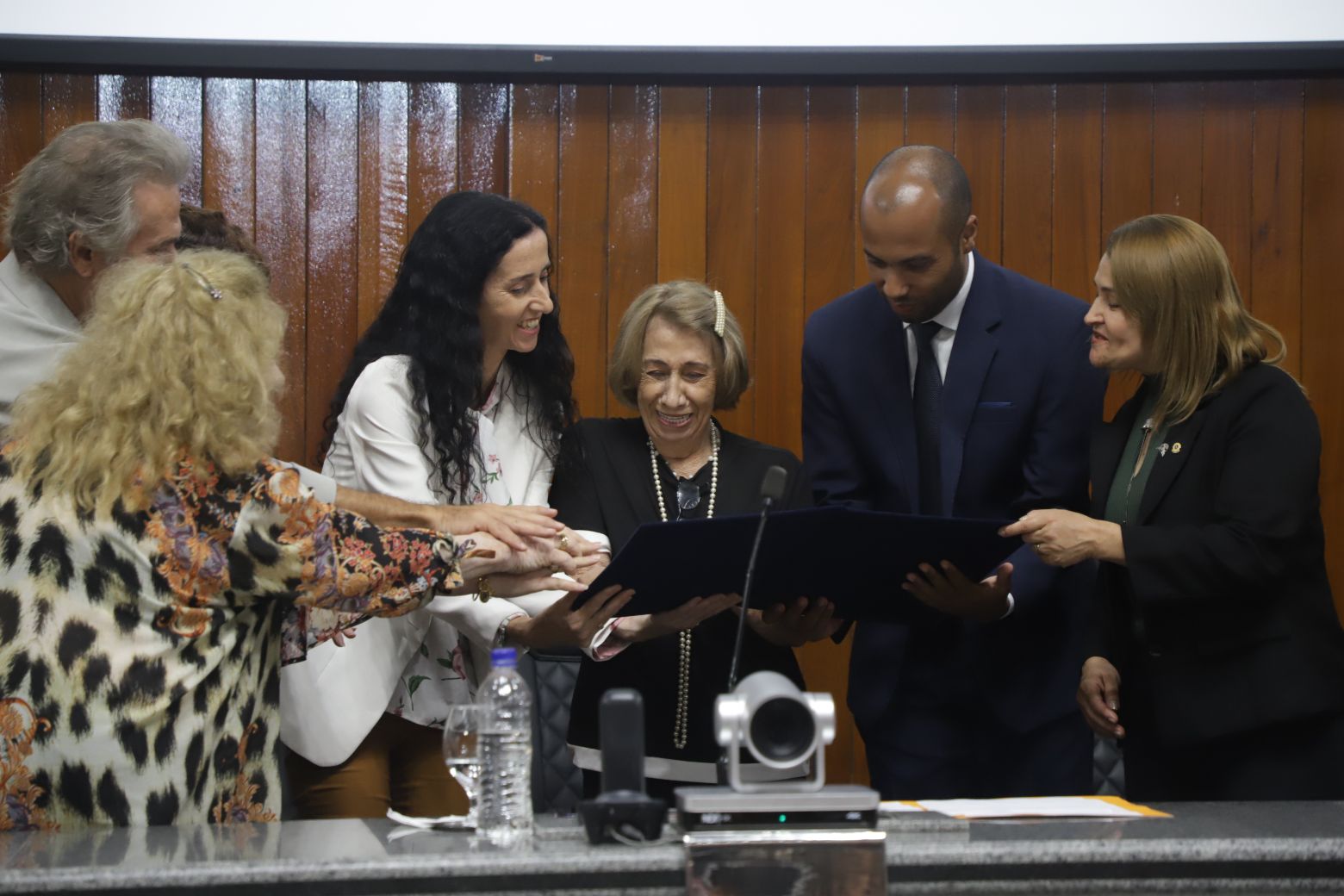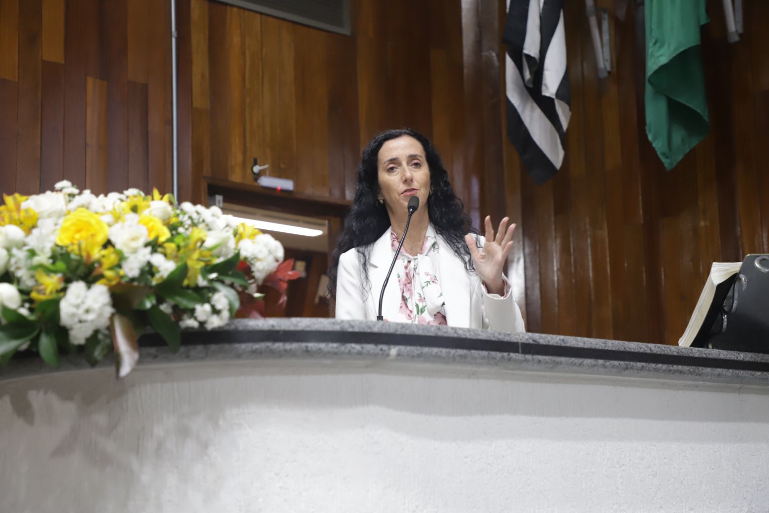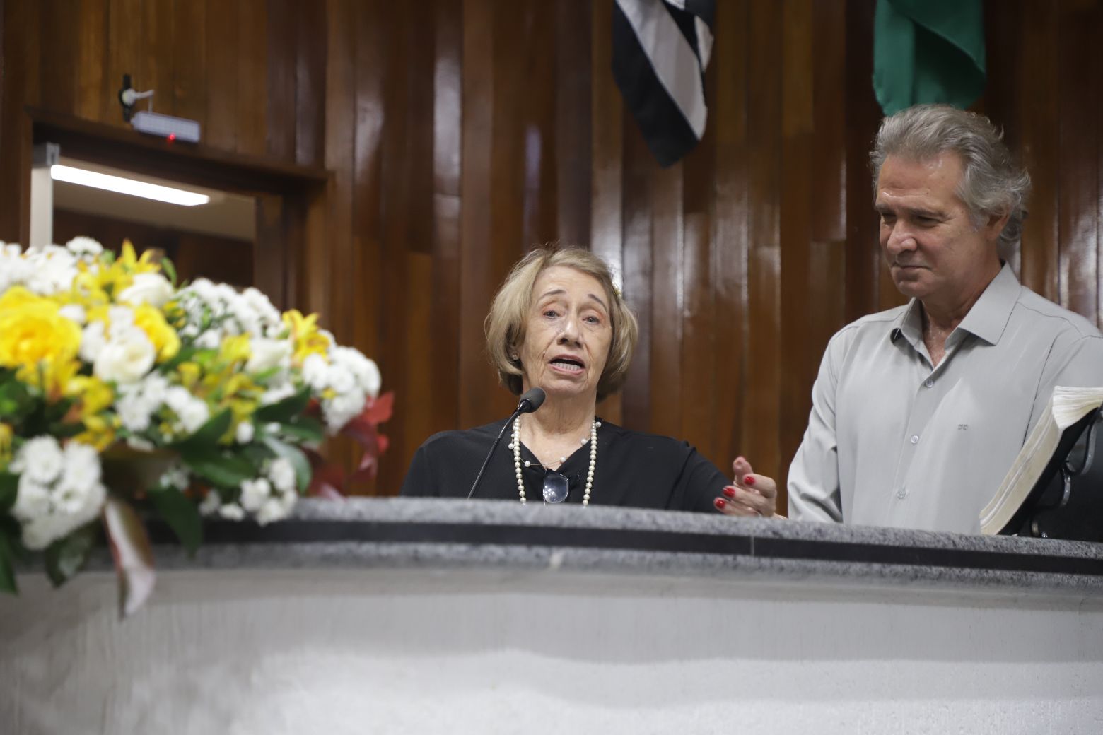 Os trabalhos legislativos foram conduzidos pela vereadora Fernanda Moreno na presidência da solenidade, com o vereador Johnny na primeira secretaria. Também compuseram a mesa diretiva, além da própria homenageada, Teresa Christina Vaz, secretária adjunta de Cultura, — representando a prefeita Mara Bertaiolli (PL)—, Ana Maria Barbosa, conhecida como Ana Marb, artista plástica e presidente da Associação Búlgara do Brasil, Rose Cardoso, presidente do Lions Clube Itapety, João Anatalino Rodrigues, presidente da Amhal (Associação Mogicruzense de História, Artes e Letras), e Nelson Freitas, ator e filho da homenageada.
