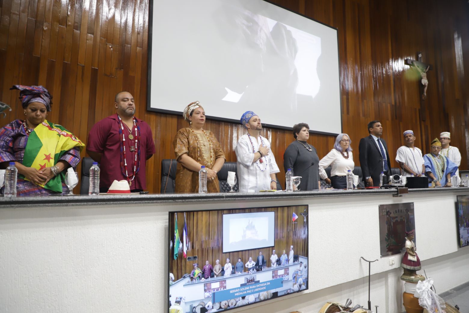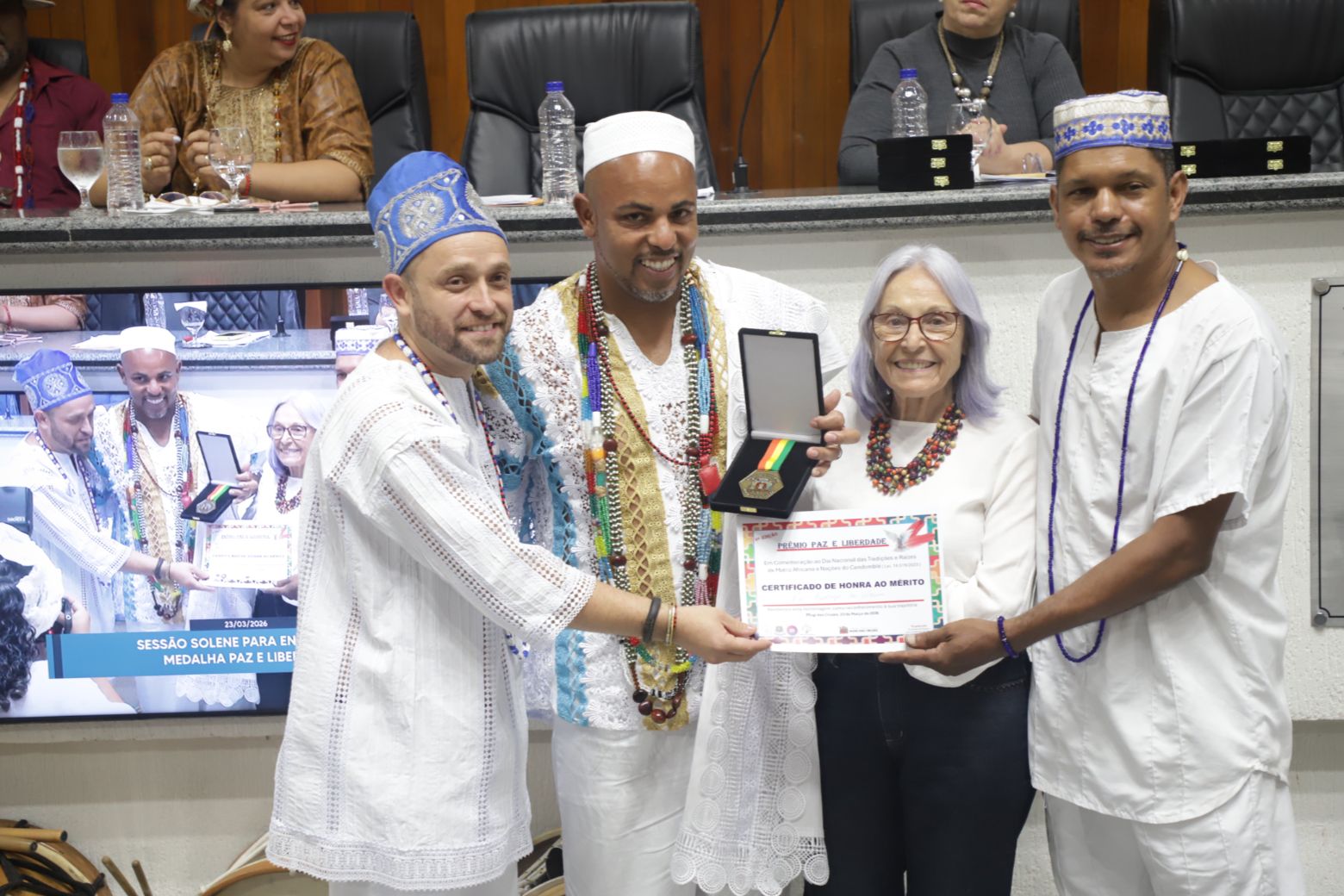 O Babalorixá Danilo de Oxalá elogiou a trajetória dos homenageados. "Parabéns aos senhores e senhoras que são mais do que merecedores dessa honraria, por sua história de vida e de luta, por serem grandes orientadores e mestres. Muitas das vezes, mestres. Por construir um legado e por nos ensinar", pontuou.