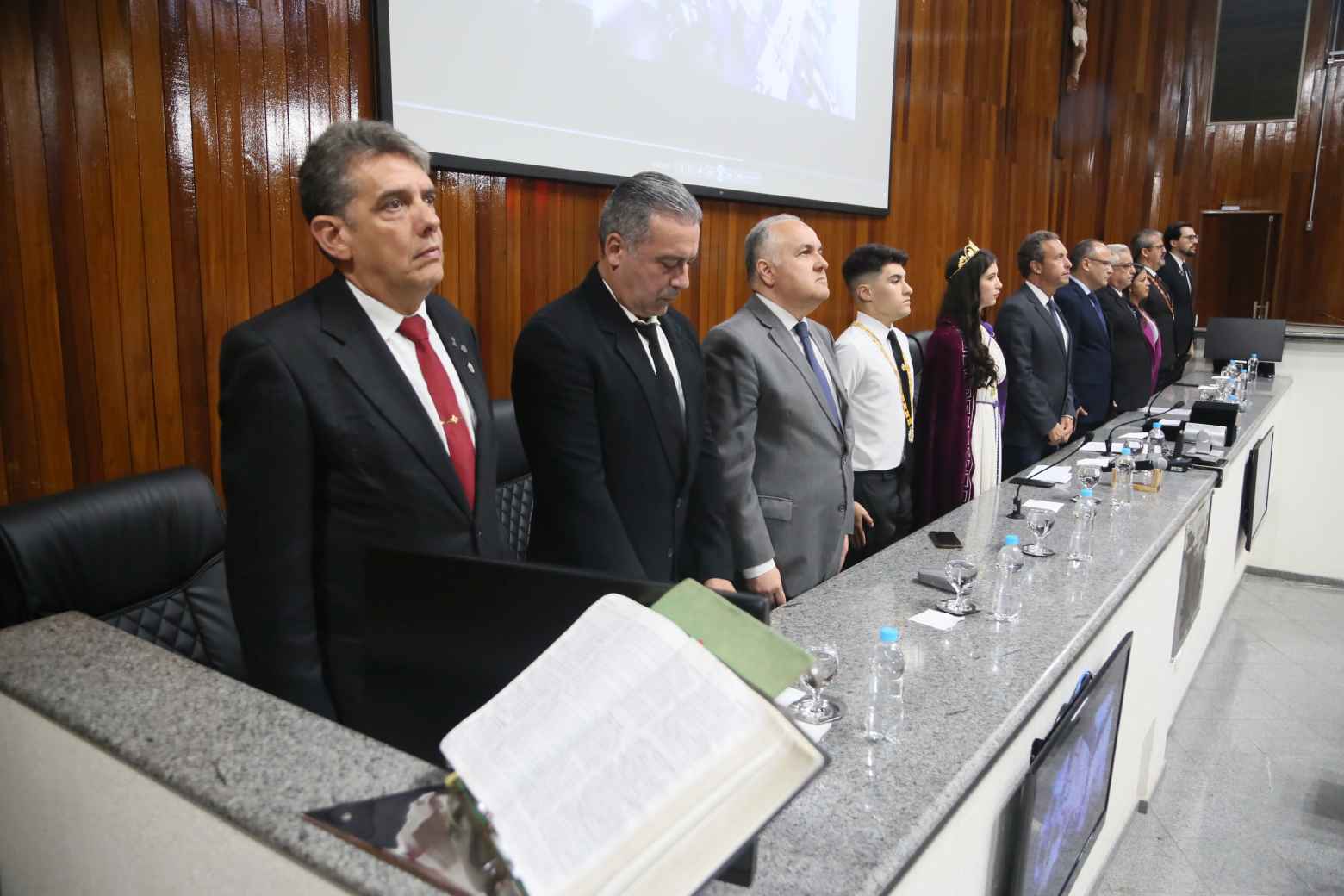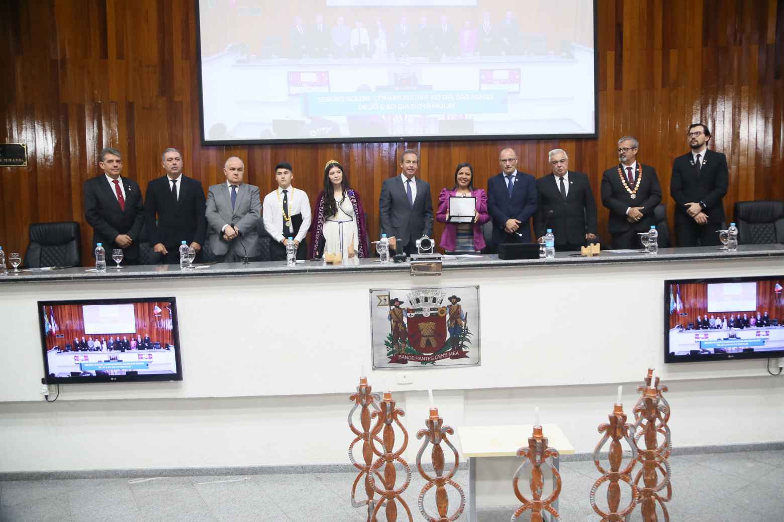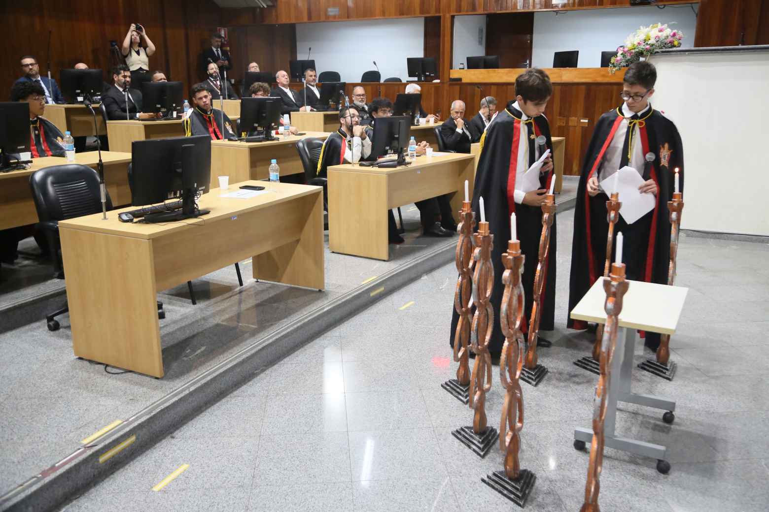 Além deles, compuseram a mesa diretiva o secretário Municipal de Habitação Social e Regularização Fundiária, Romildo Campello — representando a prefeita Mara Bertaiolli (PL)—, o membro da ARLS (Augusta e Respeitável Loja Simbólica) Acácia de Aruã Alfeu Doria, representando Renato de Almeida, grão mestre do Grande Oriente de São Paulo, o chefe de gabinete parlamentar Walter Melo — representando o presidente da Câmara de Mogi, Francimário Vieira (PL), o Farofa —, a guardiã do Bethel n°. 10 Lírios do Hermon e representante da Ordem das Filhas de Jó Internacional, Madalena Severo de Araújo Ramos, o secretário estadual de Relações Públicas Paramaçônicas do GOB (Grande Oriente do Brasil), Wagner Lacerda, representando Ruberval Ramos Castelo, grão mestre do GOB/SP, Maurício de Souza, grande mestre estadual da Ordem Demolay de São Paulo, Rafael Rodrigues, guardião do Bethel n.° 10 Lírios do Hermon, Luiz Rodrigues, mestre conselheiro do Capítulo Guardiões de Mogi das Cruzes n. º 525 Luiz Rodrigues, mestre conselheiro do Capítulo Guardiões de Mogi das Cruzes n. º 525 e membro do Supremo Conselho da Ordem Demolay, e Anna Tavares, honorável rainha do Bethel n.º 10 Lírios do Hermon, integrante das Filhas de Jó Internacional.