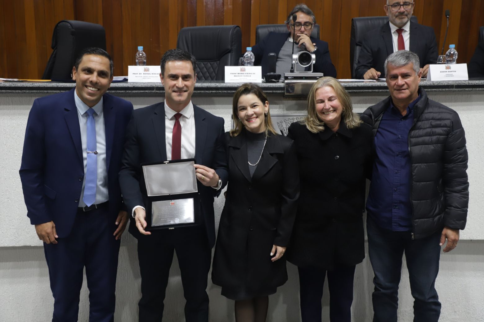 A solenidade foi conduzida pelo presidente do Legislativo, vereador Francimário Vieira Farofa (PL), e secretariada pelo vereador Edson Santos (PSD).