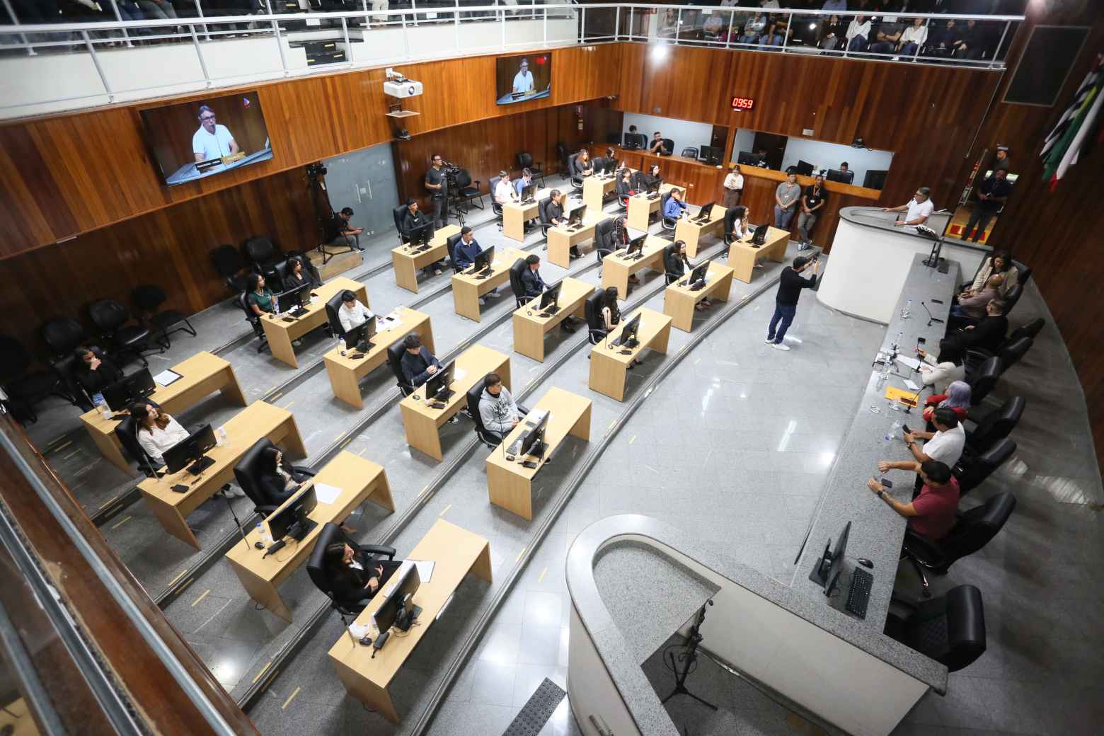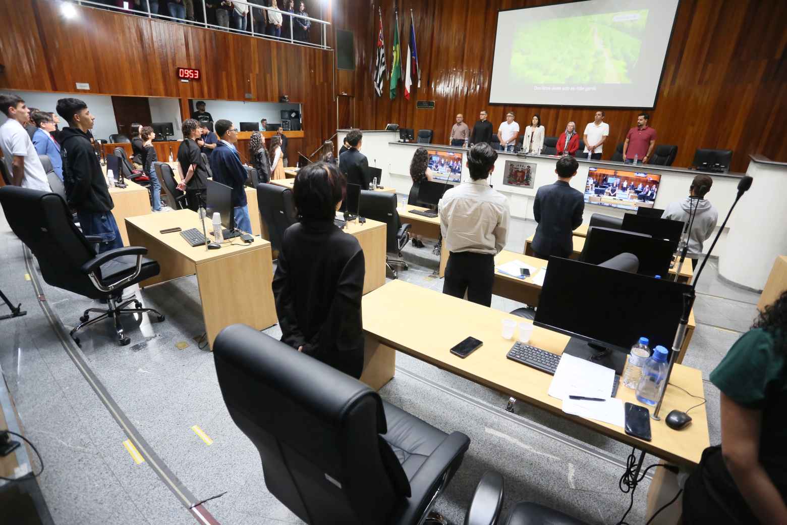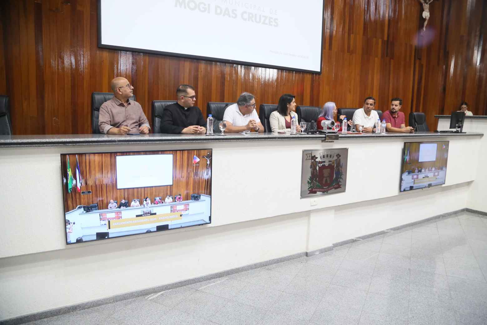 Na manhã desta quinta-feira (16), a Câmara Municipal de Mogi das Cruzes foi palco de uma sessão especial do Parlamento Estudantil, iniciativa que reúne alunos do Ensino Médio de escolas públicas e particulares do município para apresentar propostas legislativas e debater ideias voltadas ao bem comum. Na sessão, que simulou uma reunião ordinária, os jovens vereadores ocuparam os assentos dos parlamentares e apresentaram projetos que abordam desde educação e meio ambiente até saúde mental, tecnologia e mobilidade urbana.