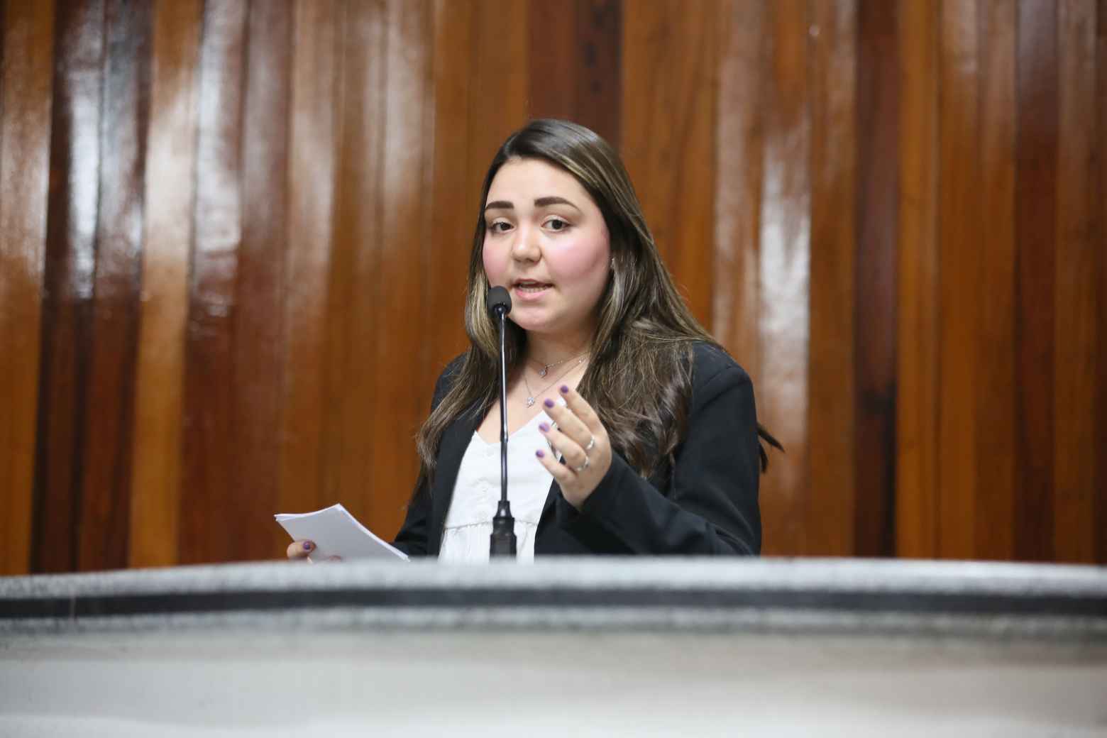 Nathália Fernandes Bastianelli, do Colégio Objetivo, apresentou o PROMAETEC – Programa Municipal de Atração de Empresas de Tecnologia, uma iniciativa para fortalecer o ecossistema de inovação em Mogi das Cruzes. “É um projeto que não fala apenas de tecnologia, mas de futuro, juventude e oportunidades reais para o nosso município. Uma proposta que prepara Mogi das Cruzes para o amanhã com responsabilidade”, defendeu.