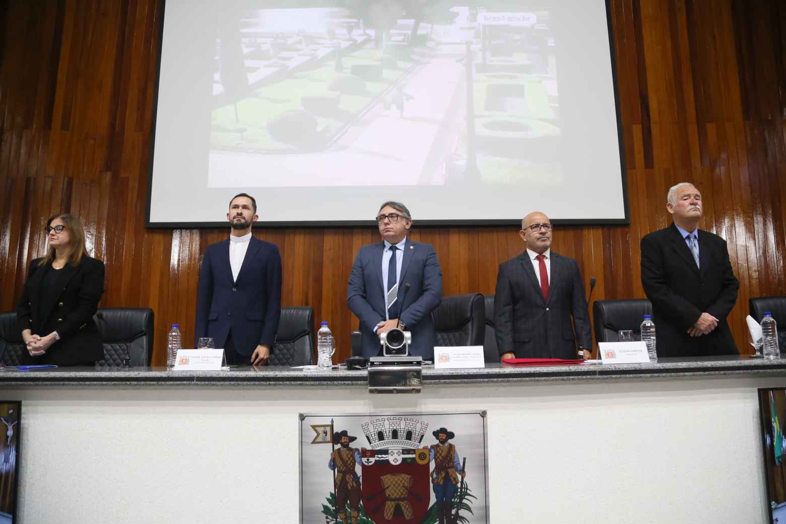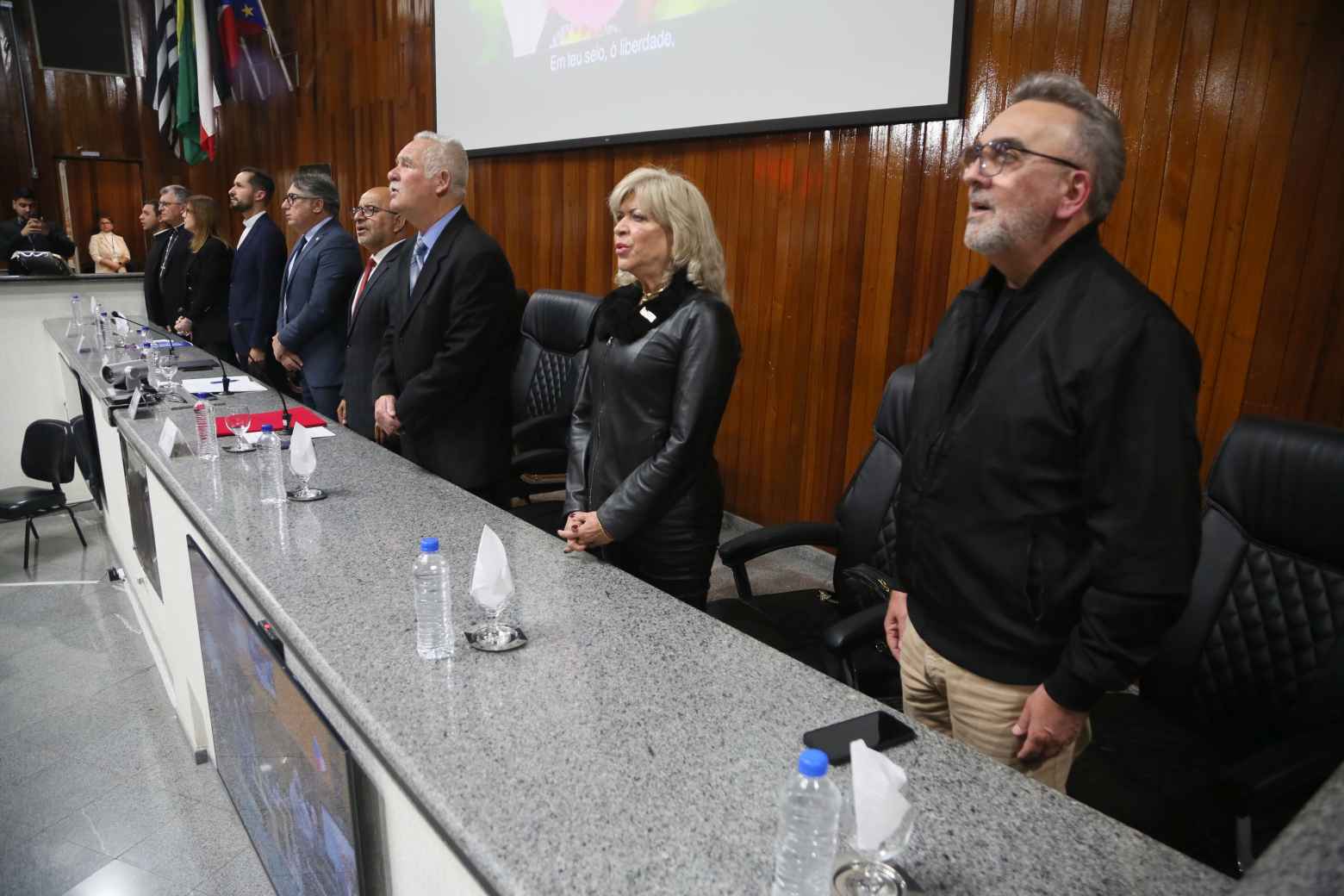 A solenidade, conduzida pelo presidente da Câmara, vereador Francimário Vieira Farofa também contou com a participação do mantenedor da Sociedade Educacional Braz Cubas, Dr. Saul Grinberg; da vice-presidente da Associação Comercial de Mogi das Cruzes, Celucéia de Souza Campolino Santos; e do colunista do Diário de Suzano, Gil Fuentes.