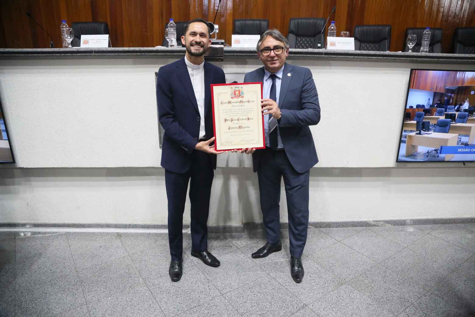 “Quem ganha com essa homenagem é a cidade de Mogi das Cruzes com esse novo mogiano tão comprometido com a obra à frente da Paróquia de Santo Antônio”, complementou o presidente da Casa, Francimário Vieira Farofa (PL).