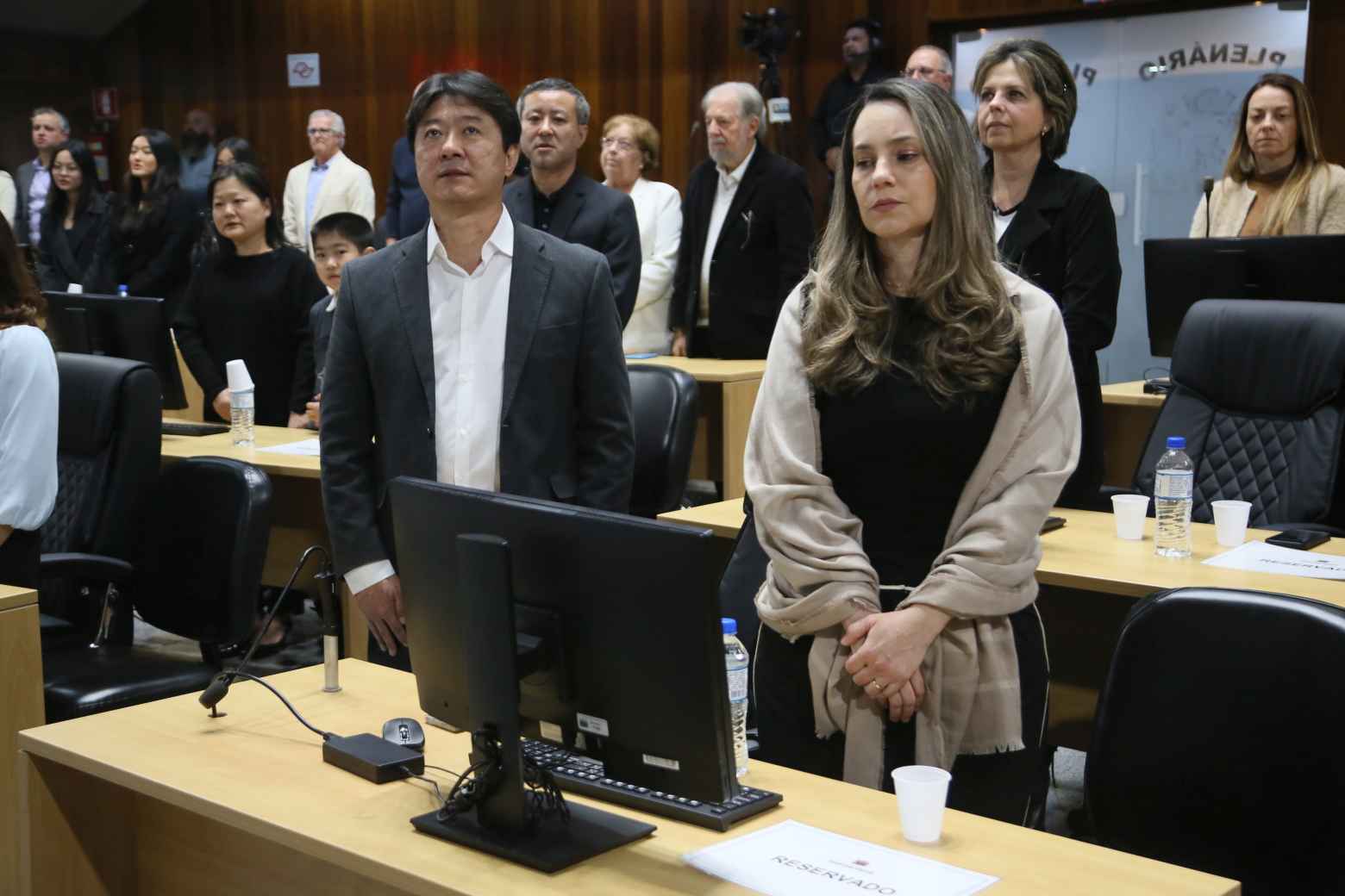 Também participaram da cerimônia os vereadores Pedro Komura (União Brasil) e Vitor Emori (PL).