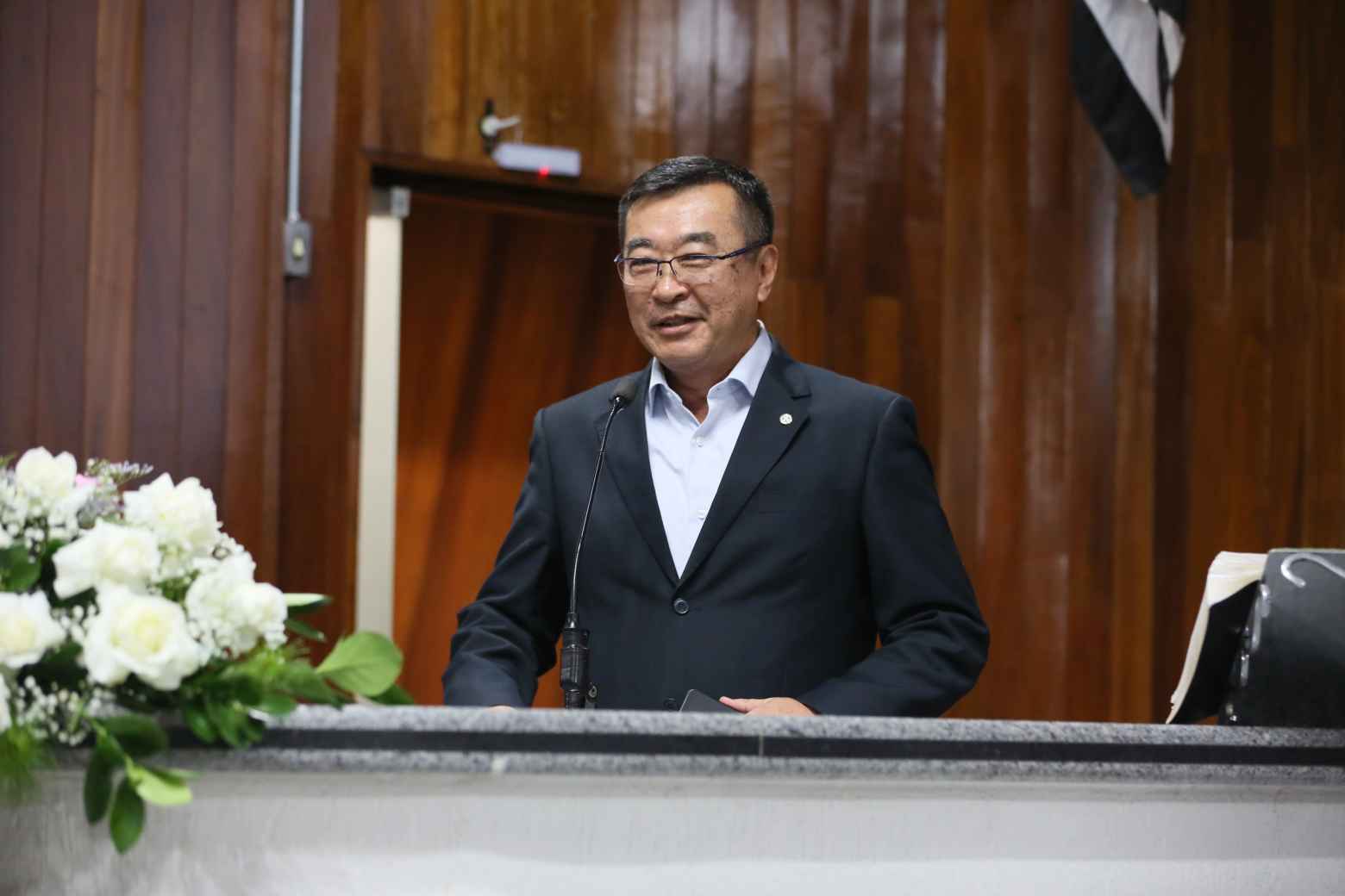 Edu Ota discursou em nome da Câmara, abrindo o uso da palavra. “Esta é uma noite muito feliz. O senhor Toshio sempre trabalhou pela segurança e pela agricultura. Ele ajudou ainda na Educação, reivindicando a instalação da escola pública do Cocuera. Esta é uma honraria justa e merecida”.