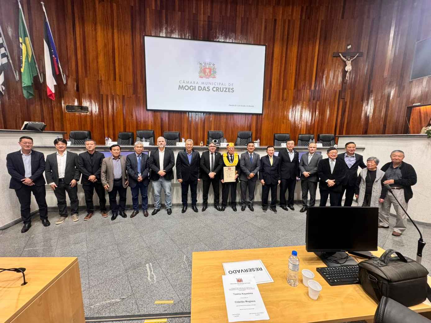 Em sessão solene nesta quarta-feira (22), a Câmara Municipal de Mogi das Cruzes outorgou o título honorífico de “Cidadão Mogiano” ao servidor público aposentado Toshio Kayasima por sua vasta contribuição ao desenvolvimento agrícola.