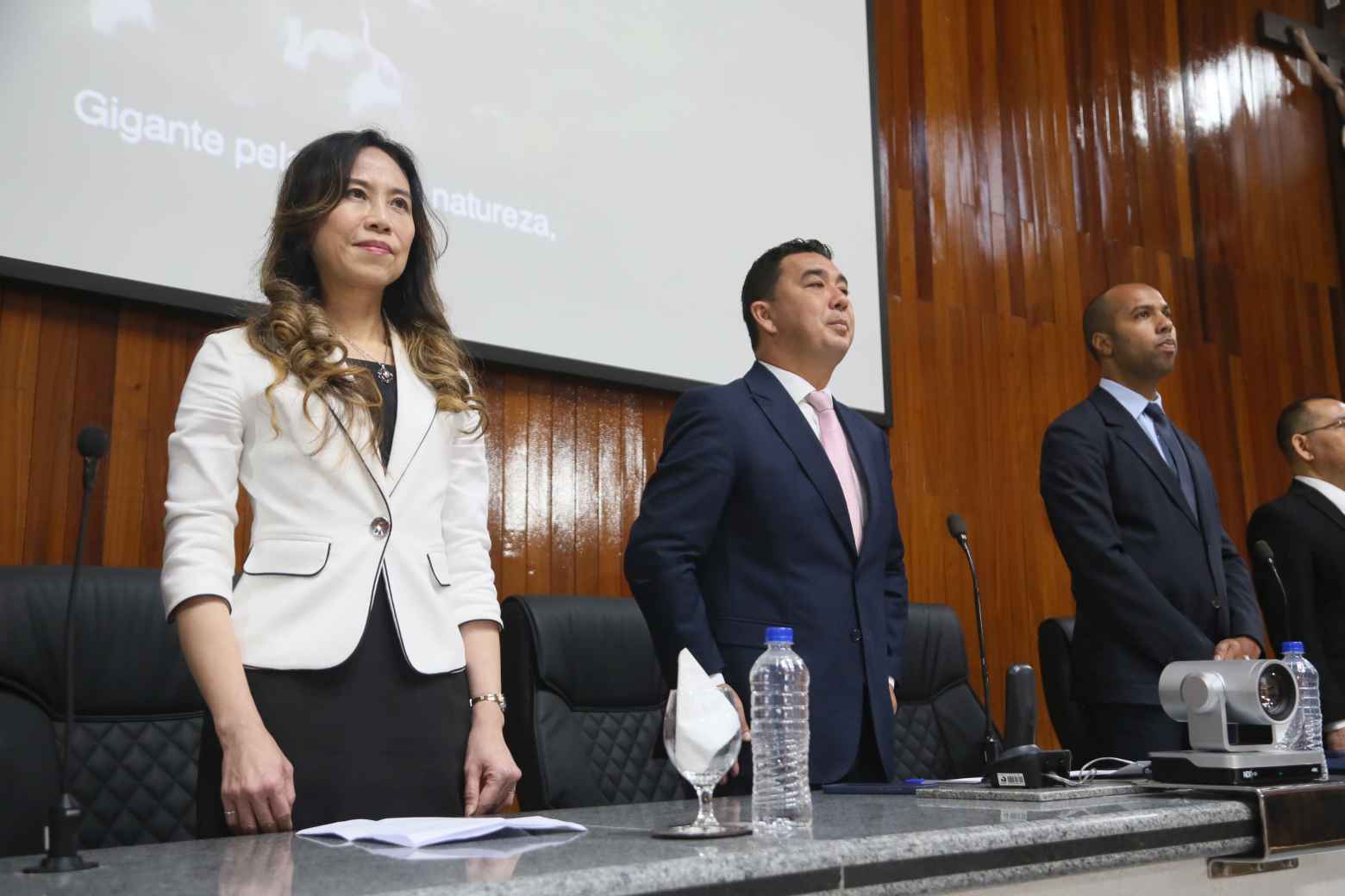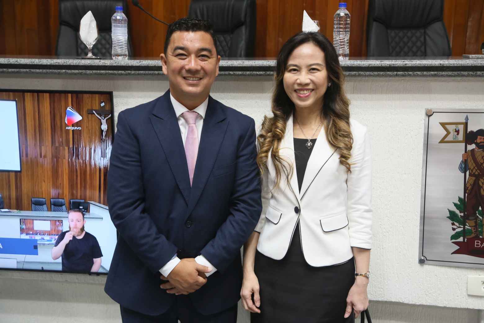 A cerimônia contou ainda com o vereador Edu Ota (Pode) na presidência da sessão e com o vereador Johnny da Inclusão (Avante) na primeira secretaria.