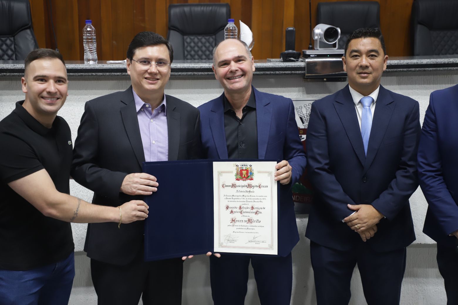 A Câmara Municipal de Mogi das Cruzes realizou, nesta quarta-feira (26), sessão solene para a entrega do título de “Honra ao Mérito” à Prosindic – Solução e Serviços de Apoio a Condomínios Ltda., em reconhecimento aos seus 10 anos de fundação. A homenagem foi proposta pelo vereador Prof. Edu Ota (Pode) e aprovada por meio do Projeto de Decreto Legislativo nº 60/2025.