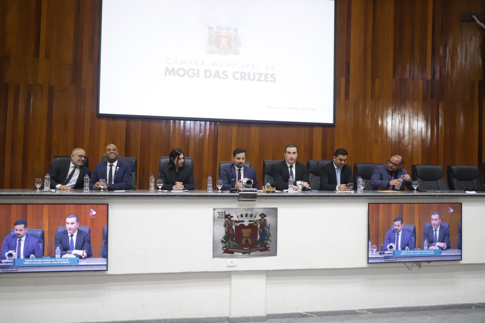 O vereador Bi Gêmeos (PSD) ocupou a presidência da sessão, com o parlamentar Marcos Furlan na primeira secretaria. Além deles, compuseram a mesa diretiva o secretário municipal de Cultura, Guilherme Dela Plata, — representando a prefeita da Cidade, Mara Bertaiolli (PL), —, e os vereadores da Comissão Permanente de Cultura, Esporte e Turismo Eduardo Ota (Pode), Juliano Botelho (PL) e Tonhão de Jundiapeba (PL).