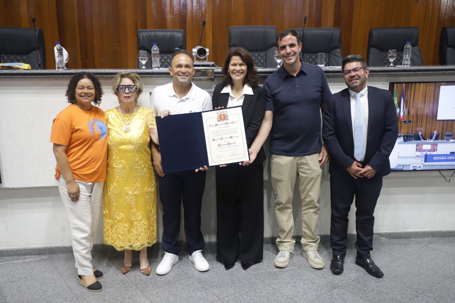 A Câmara Municipal de Mogi das Cruzes outorgou, em sessão solene nesta segunda-feira, 15, título de “Honra ao Mérito” ao programa de atendimento social "Fazendo a Diferença", que funciona na Rua Benedicto Ferreira Lopes, km 2, no Jardim Maricá, na Serra do Itapeti. Realizada no plenário vereador doutor Luiz Beraldo de Miranda, a homenagem é uma iniciativa da vereadora Priscila Yamagami (PP) e obedece ao Decreto Legislativo n. ° 283/2025.
