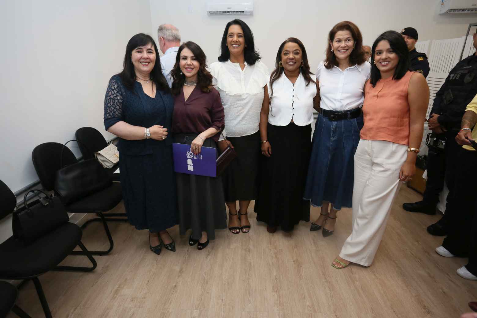 Uma comitiva de parlamentares da Câmara Municipal de Mogi das Cruzes participou, na tarde desta terça-feira (13), da cerimônia de inauguração da nova unidade da Delegacia de Defesa da Mulher (DDM). Estiveram presentes os vereadores Edson Santos (PSD), Maurinho do Despachante (PRD), Malu Fernandes (PL), Clodoaldo Moraes (PL), Tonhão de Jundiapeba (PL) e Priscila Yamagami Kähler (PP), que acompanharam de perto a apresentação das novas instalações voltadas ao atendimento mais humanizado e seguro para as vítimas de violência na cidade.