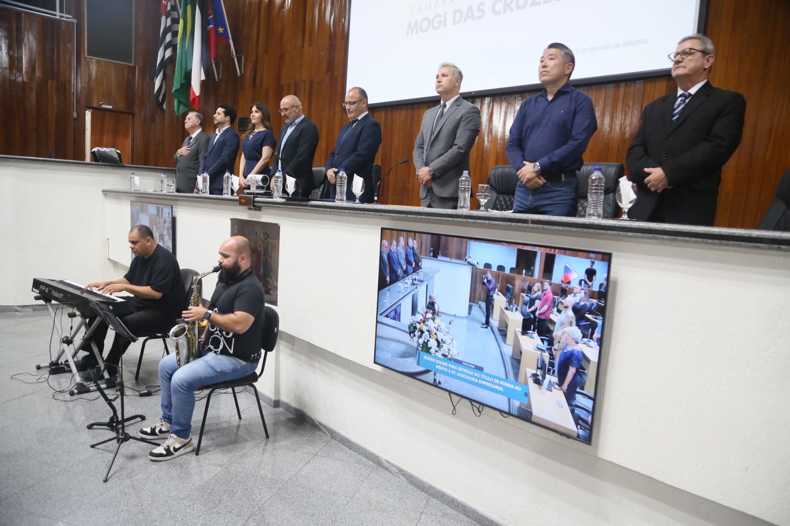 A sessão, presidida pelo vereador Mauro de Assis Margarido, contou com a apresentação musical do Grupo Popular da Sinfônica de Mogi das Cruzes. Também participaram da solenidade o presidente da Legião Mirim de Mogi, Ediel Braz Soares; e o coordenador-geral do Akimatsuri, Daniel Aoyagui.