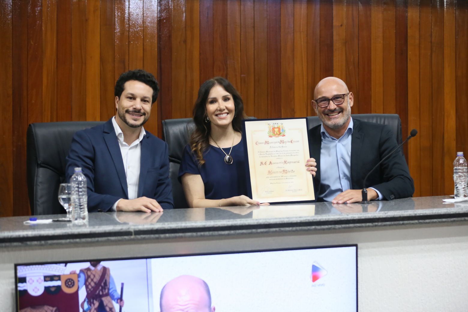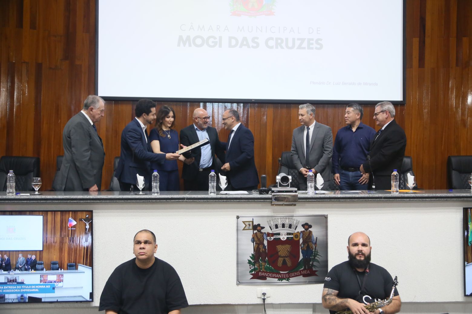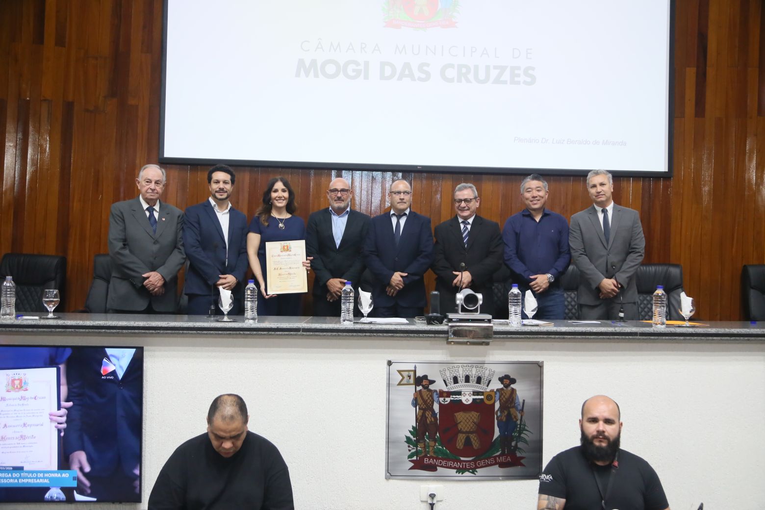 A Câmara Municipal de Mogi das Cruzes realizou, nesta quinta-feira (19), uma sessão solene para a entrega do título de “Honra ao Mérito” à RC Assessoria Empresarial, em reconhecimento aos seus 50 anos de fundação e atuação no município. A homenagem foi proposta pelo vereador Maurinho do Despachante (PRD) e aprovada por meio do Projeto de Decreto Legislativo nº 43/2025.