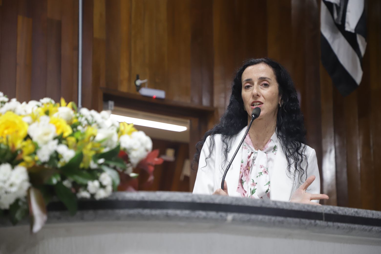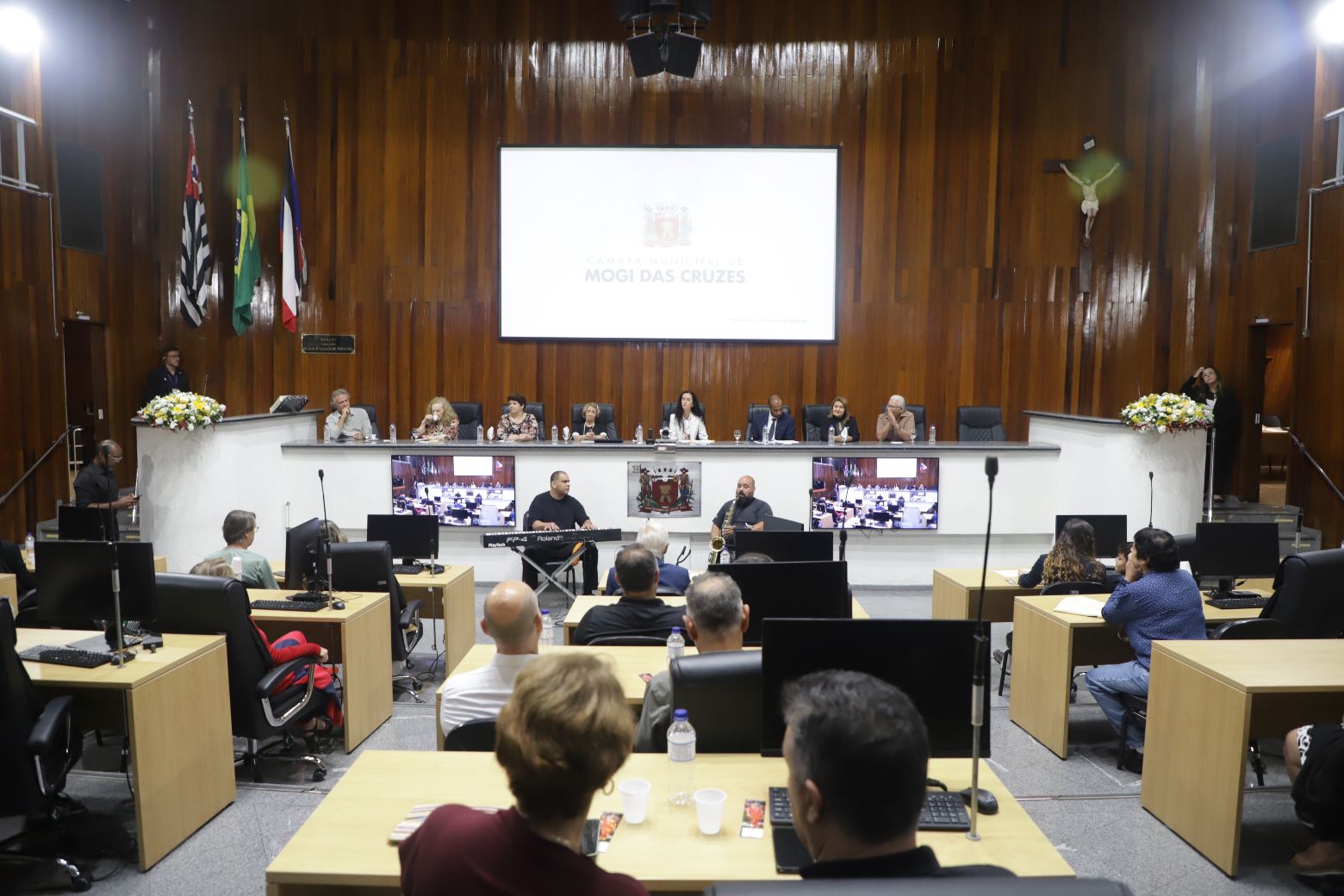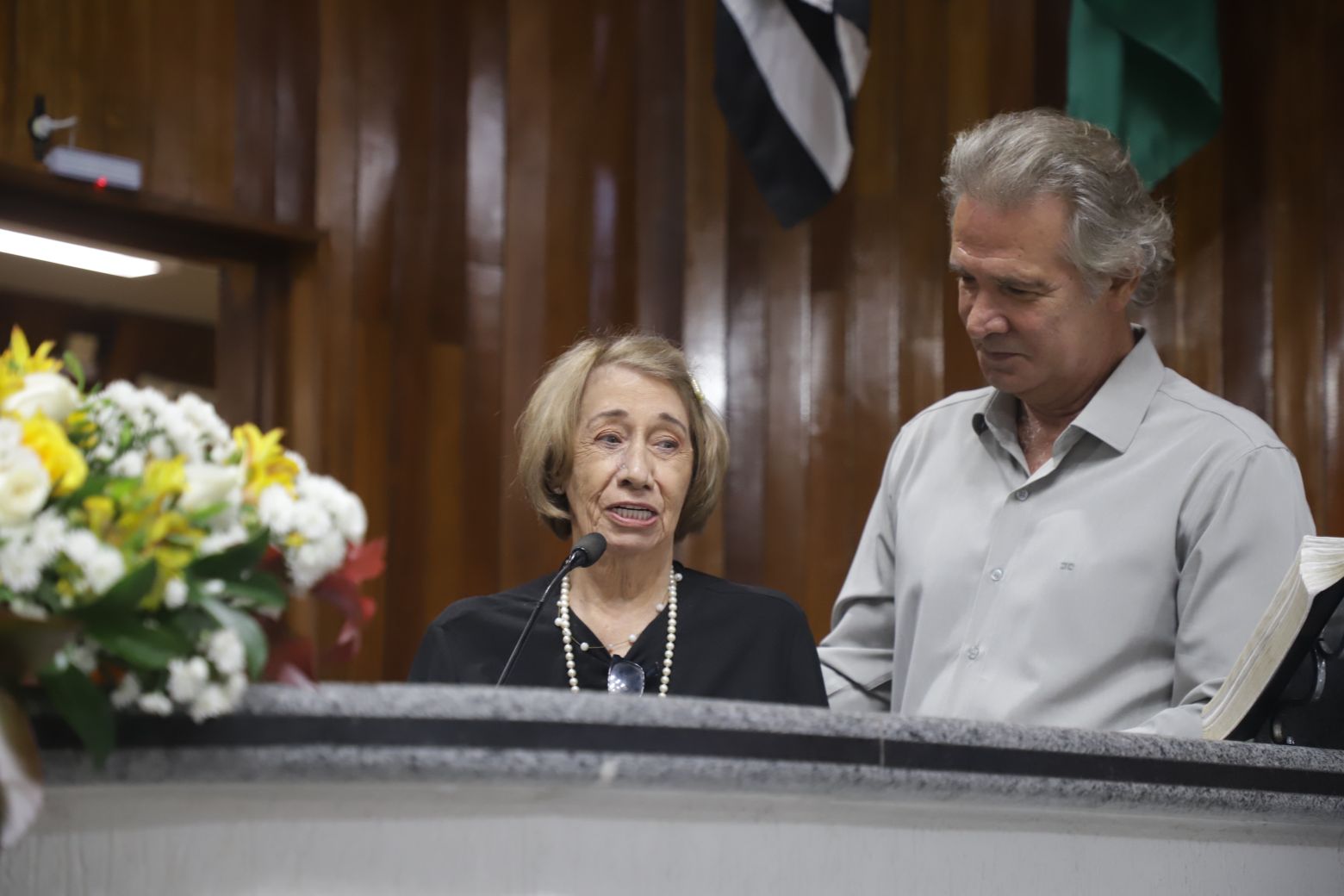 Os trabalhos legislativos foram conduzidos pela vereadora Fernanda Moreno na presidência da solenidade, com o vereador Johnny na primeira secretaria. Também compuseram a mesa diretiva, além da própria homenageada, Teresa Christina Vaz, secretária adjunta de Cultura, — representando a prefeita Mara Bertaiolli (PL)—, Ana Maria Barbosa, conhecida como Ana Marb, artista plástica e presidente da Associação Búlgara do Brasil, Rose Cardoso, presidente do Lions Clube Itapety, João Anatalino Rodrigues, presidente da Amhal (Associação Mogicruzense de História, Artes e Letras), e Nelson Freitas, ator e filho da homenageada.