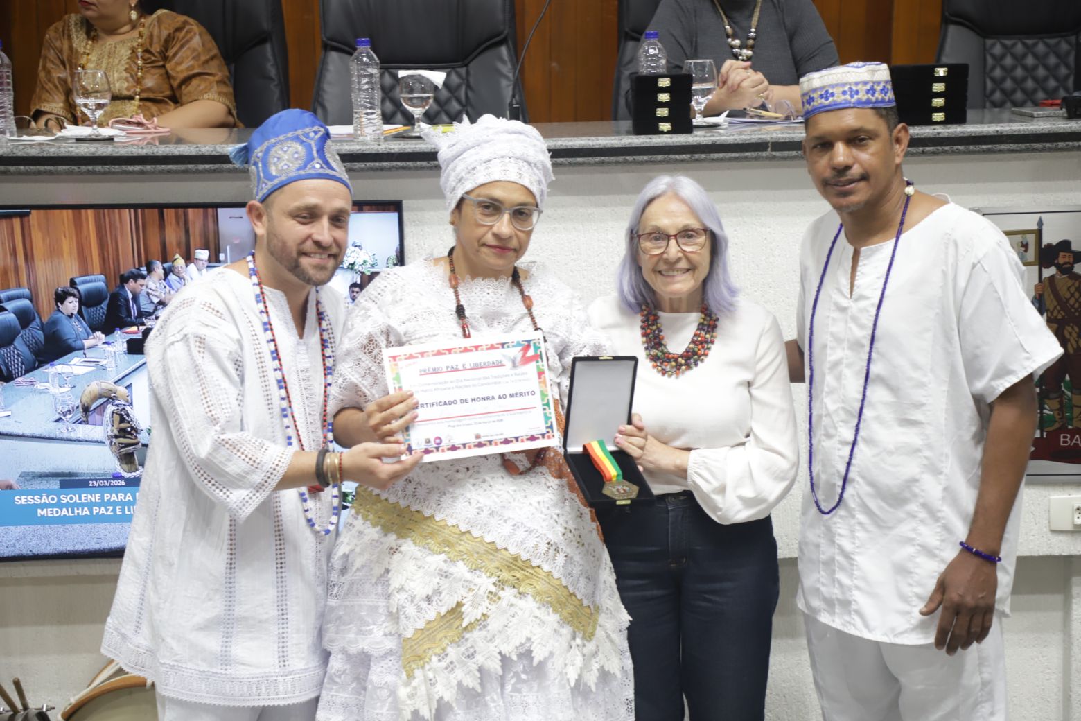 O Babalorixá Danilo de Oxalá elogiou a trajetória dos homenageados. "Parabéns aos senhores e senhoras que são mais do que merecedores dessa honraria, por sua história de vida e de luta, por serem grandes orientadores e mestres. Muitas das vezes, mestres. Por construir um legado e por nos ensinar", pontuou.
