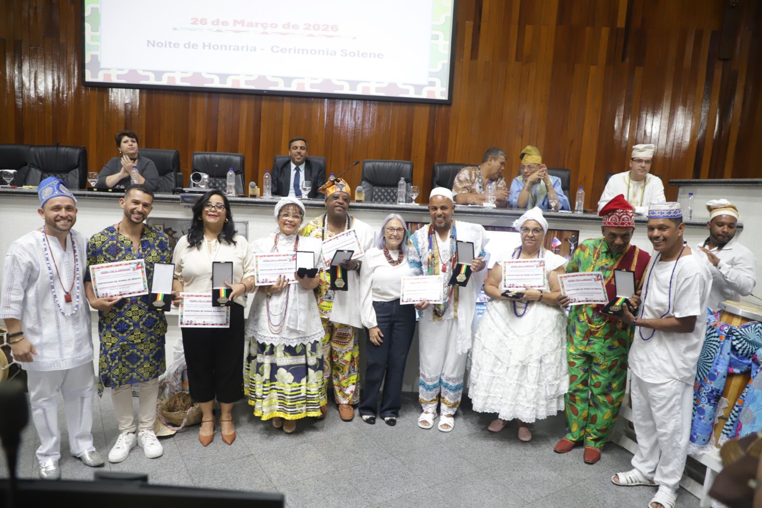 A solenidade reservou também um espaço especial dedicado às Crianças do Axé, celebrando a continuidade, a memória viva e o futuro das tradições. O momento reforçou a importância de proteger e guiar as novas gerações, garantindo que o legado ancestral permaneça pulsando com orgulho e identidade. Foram homenageadas as crianças Rayssa de Oyá, Isabel de Iemanjá, Rayane de Yewa, Agatha de Oxum, Kayke de Ayra, Yago de Oxóssi, Nayra Freitas, Lorena Arias, Pietra Eleonora, Maria Eduarda, Egbón Bruna de Nanã, Egbon Beatriz de Oxum, Rebeca de Oxum, Lara de Obá, Cristhian de Oxoguian, Bernardo Andrade Ramos e Elis Martins Traforti Miranda.