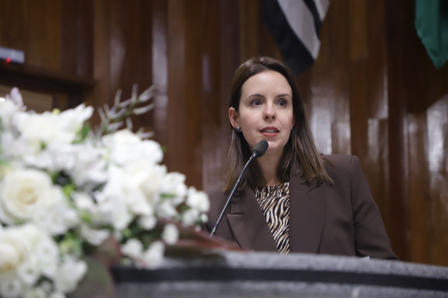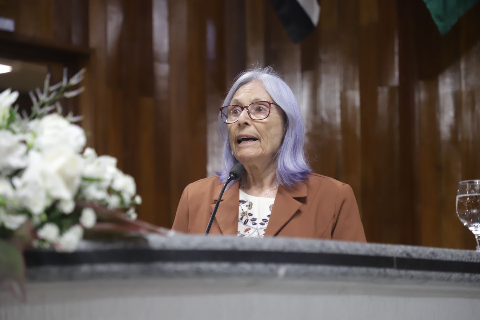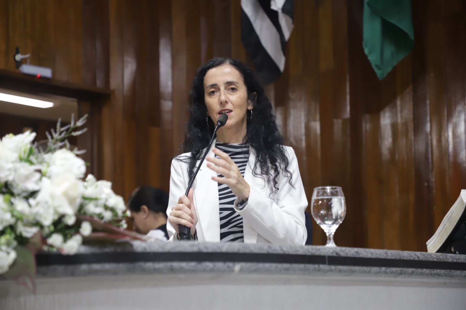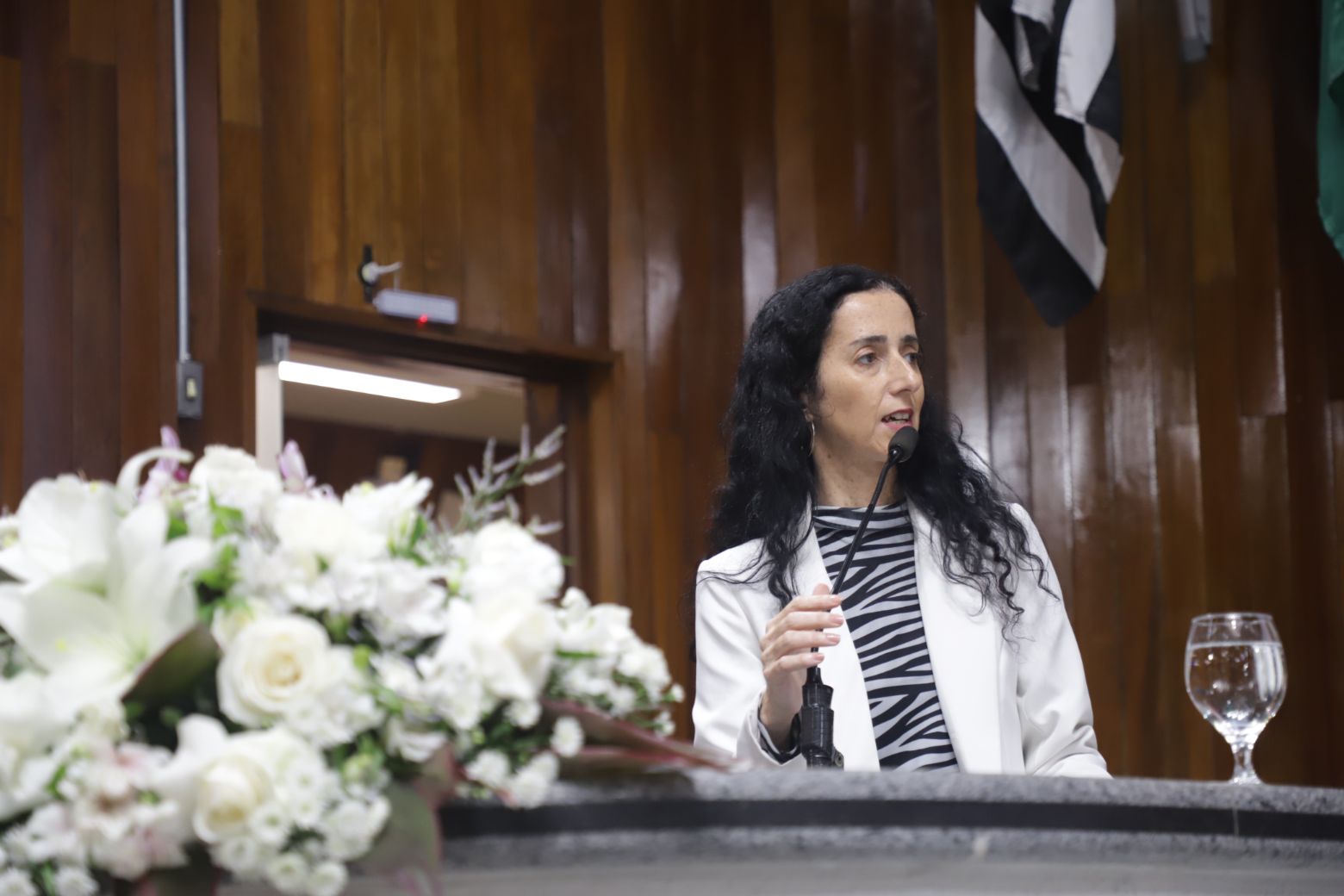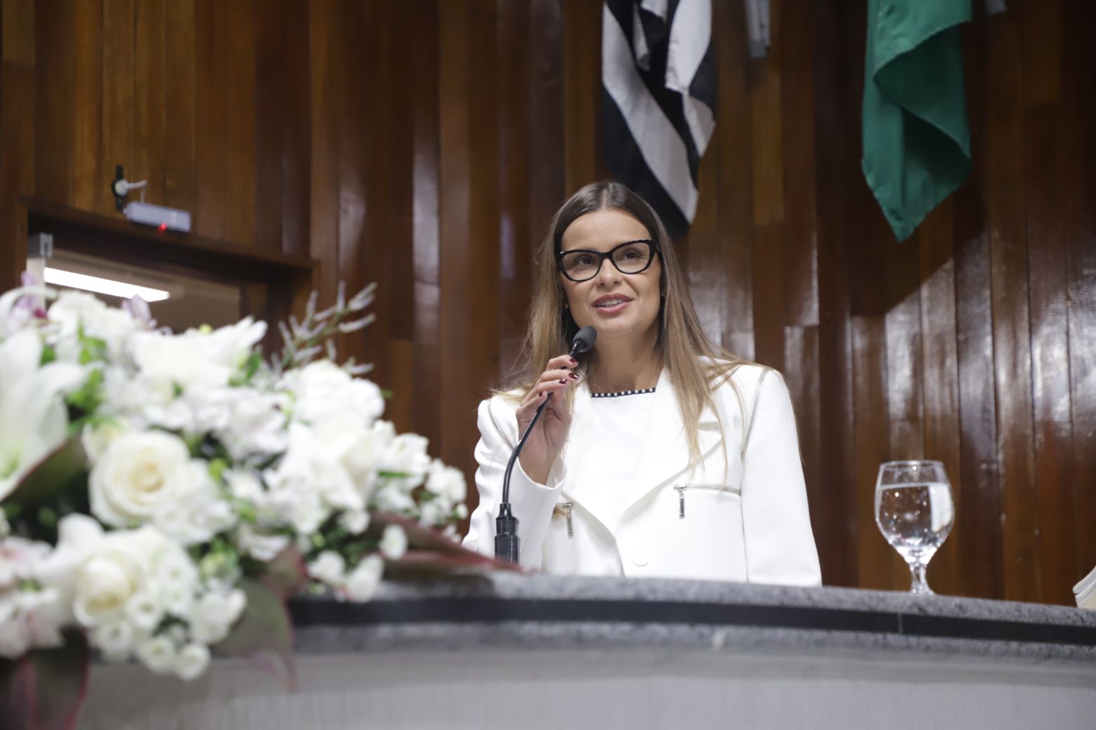 Priscila iniciou a sequência de discursos. “É uma noite muito especial, daquelas de despertar muitas emoções. Enaltecemos essas mulheres com muito orgulho e amor. Nossas mulheres são fortes, corajosas e muito determinadas”.
