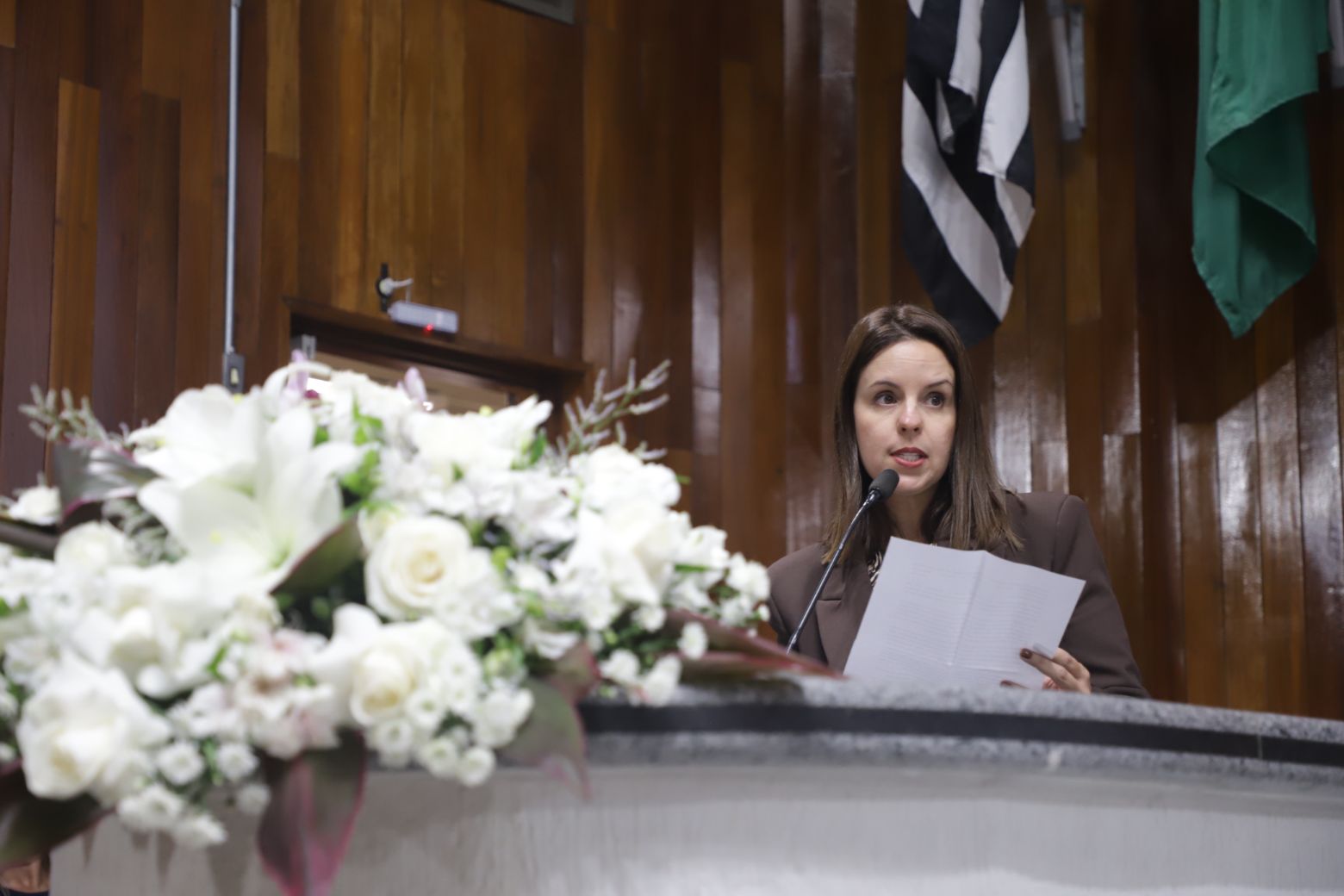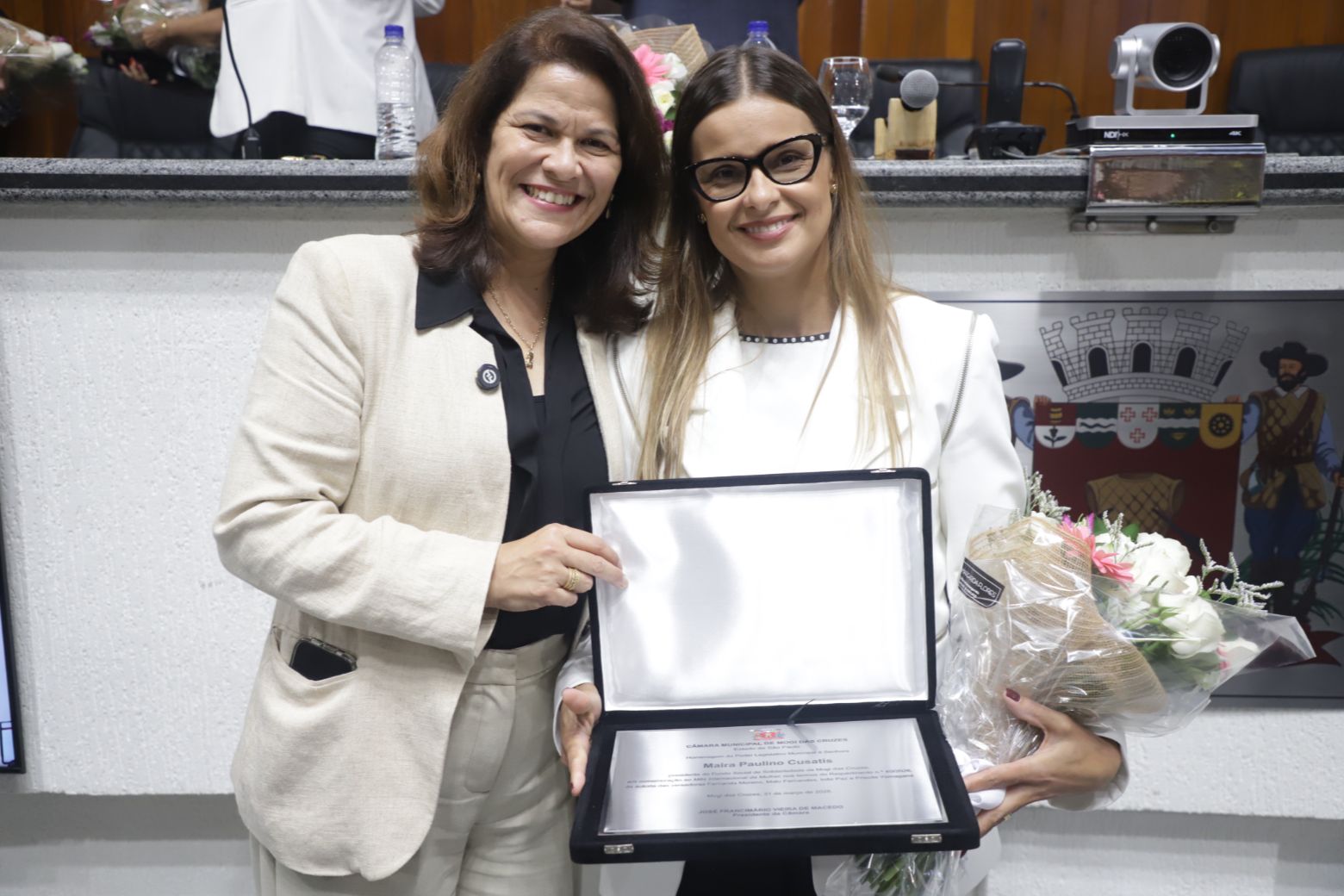 Os trabalhos foram conduzidos pela vereadora Fernanda Moreno na presidência da sessão, com a vereadora Malu Fernandes na primeira secretaria. Além delas, compuseram a mesa diretiva a prefeita de Mogi, Mara Bertaiolli (PL), as vereadoras Inês Paz e Priscila Yamagami e as homenageadas da noite.