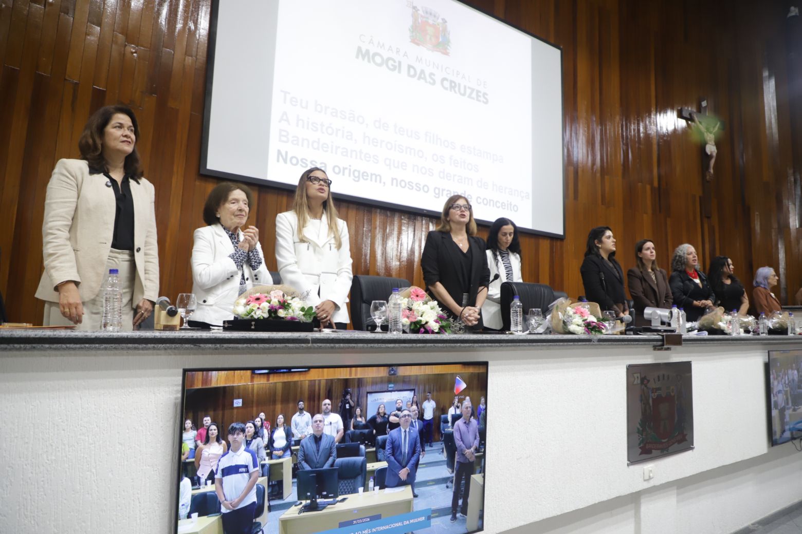Em ato solene realizado nesta terça-feira (31), a Câmara Municipal de Mogi das Cruzes realizou solenidade para homenagear o “Mês da Mulher”. O evento obedece ao Requerimento nº. 40/2026, de autoria das vereadoras Fernanda Moreno (MDB), Inês Paz (PSOL), Malu Fernandes (PL) e Priscila Yamagami (PL). A intenção é reconhecer publicamente as mulheres mogianas que se destacaram em diversas áreas da sociedade.