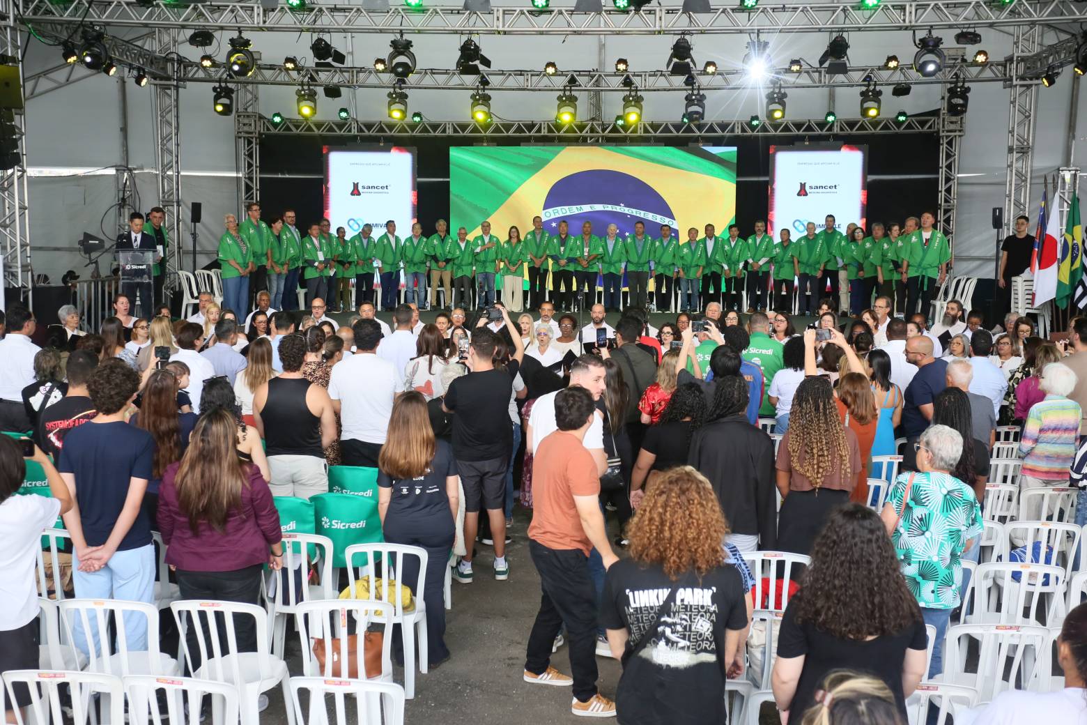 A Câmara Municipal de Mogi das Cruzes marcou presença, na manhã deste sábado (11), na cerimônia oficial de abertura da 39ª edição do Festival de Outono Akimatsuri. O evento, realizado no Centro Esportivo do Bunkyo, no bairro da Porteira Preta, é um dos mais importantes do calendário oficial da cidade e celebra a tradição e a contribuição da comunidade japonesa para o desenvolvimento da região. Representando o Poder Legislativo, os parlamentares acompanharam o tradicional rito do Kagami Biraki, a quebra do barril de saquê, que simboliza votos de harmonia e prosperidade para o festival e para o município.