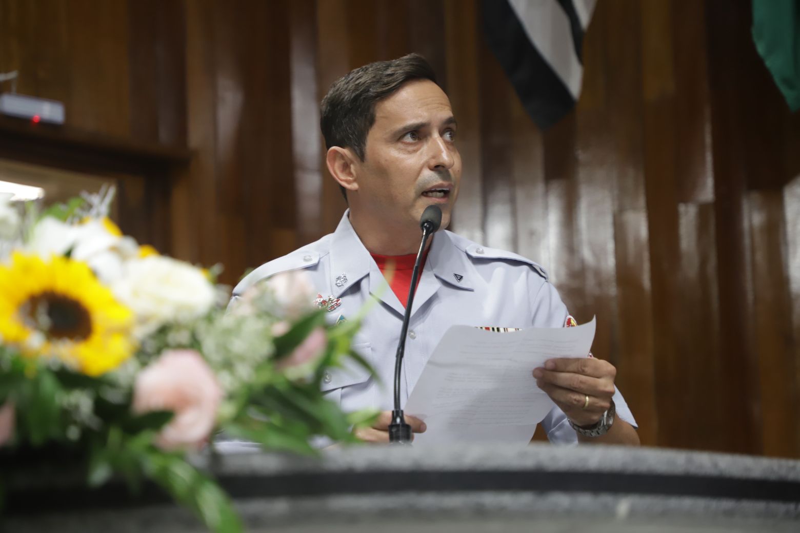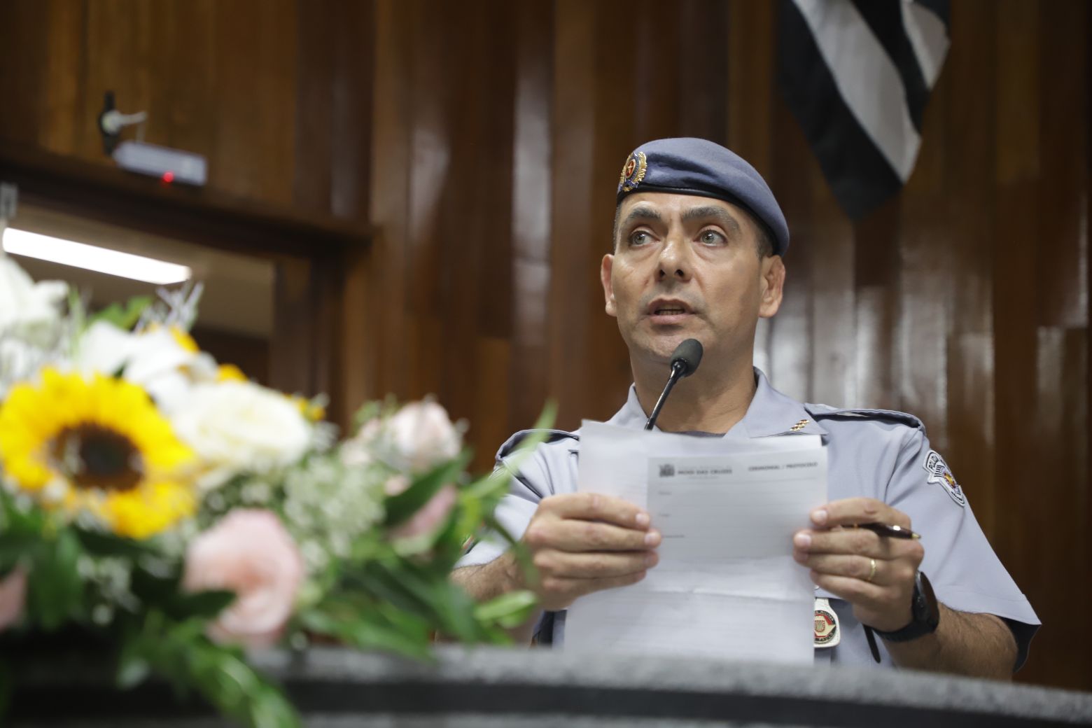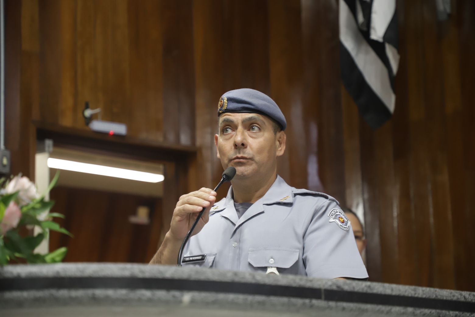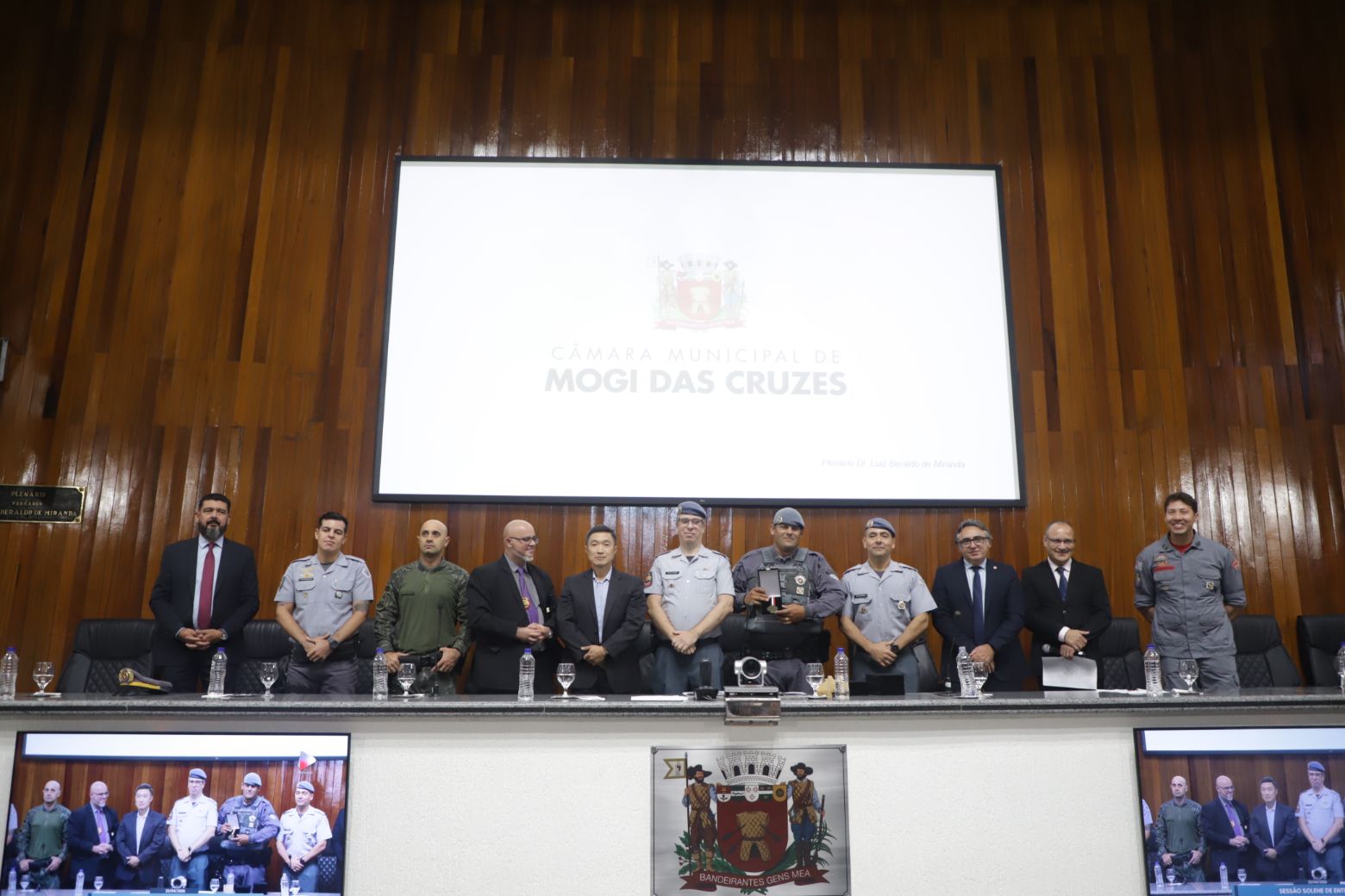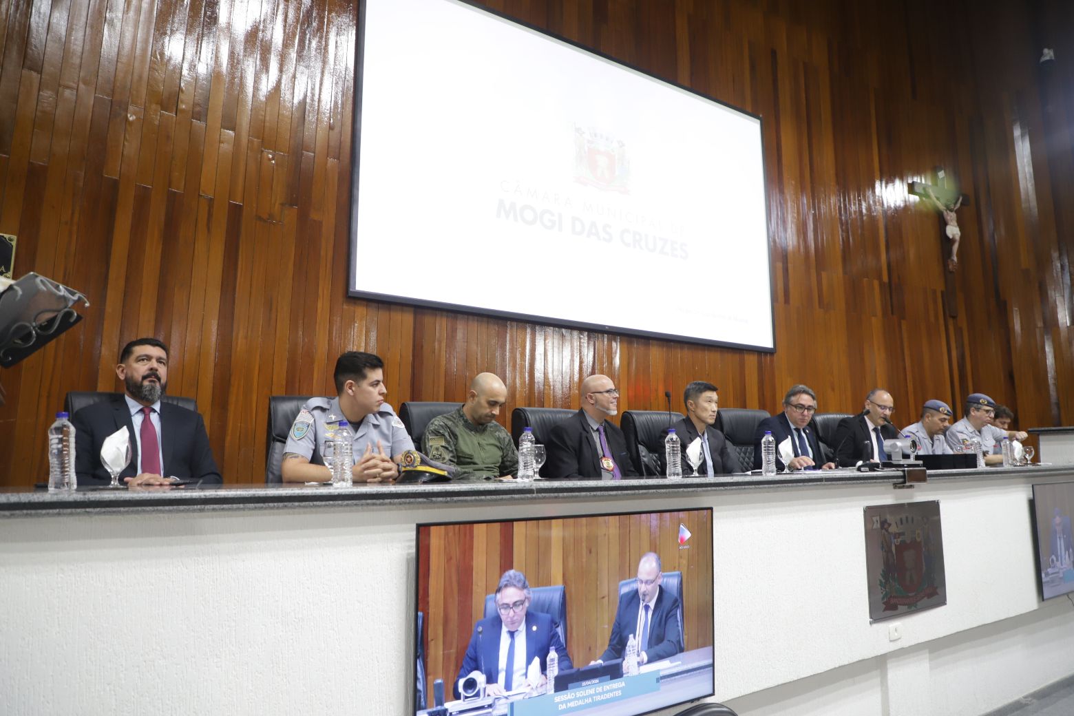 Além deles, compuseram a mesa diretiva o secretário municipal de Segurança, Gilberto Tsutomu Ito, — representando a prefeita Mara Bertaiolli (PL) —, o comandante do CPAM-12 (Comando de Policiamento de Área Metropolitano), coronel Rodrigo de Oliveira Carneiro, Denis Miragaia Cintra, delegado da DDM (Delegacia de Defesa da Mulher), — representando Margarete Barreto, delegada de polícia seccional de Mogi das Cruzes, o tenente-coronel Alexandre Zakir, comandante do 17º Batalhão da PM, o primeiro-tenente Edson Alves de Lima, comandante do 2º Pelotão 5ª Companhia de Policiamento Ambiental, primeiro-tenente Marcelo dos Santos Myiatake, do 17º Grupamento do Corpo de Bombeiros de Mogi — representando o tenente-coronel Rodrigo Barelli, o segundo-tenente Eduardo Elizeu Vicente Filho, comandante do Pelotão Rodoviário do Alto Tiete, e Marcelo Inocêncio, presidente da OAB/Mogi das Cruzes.