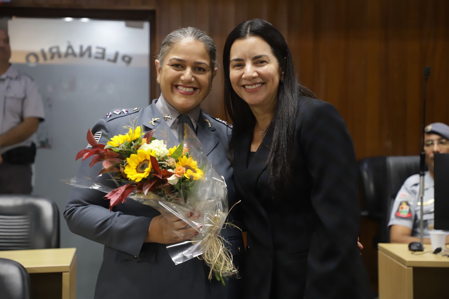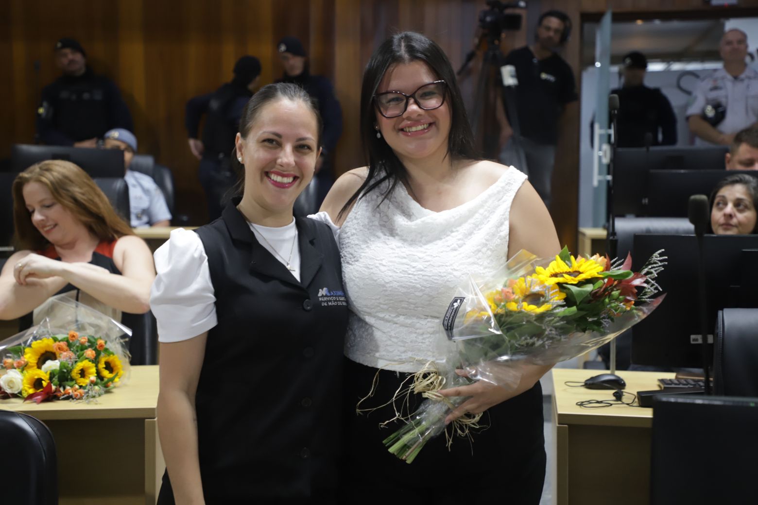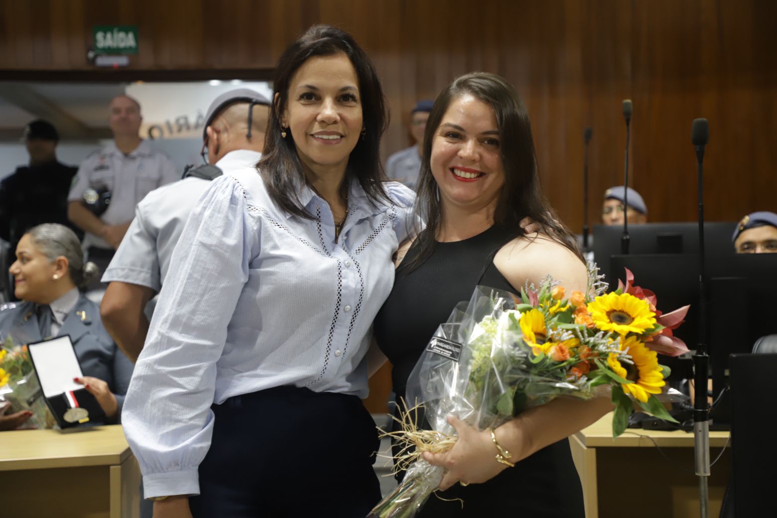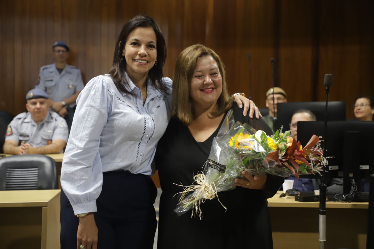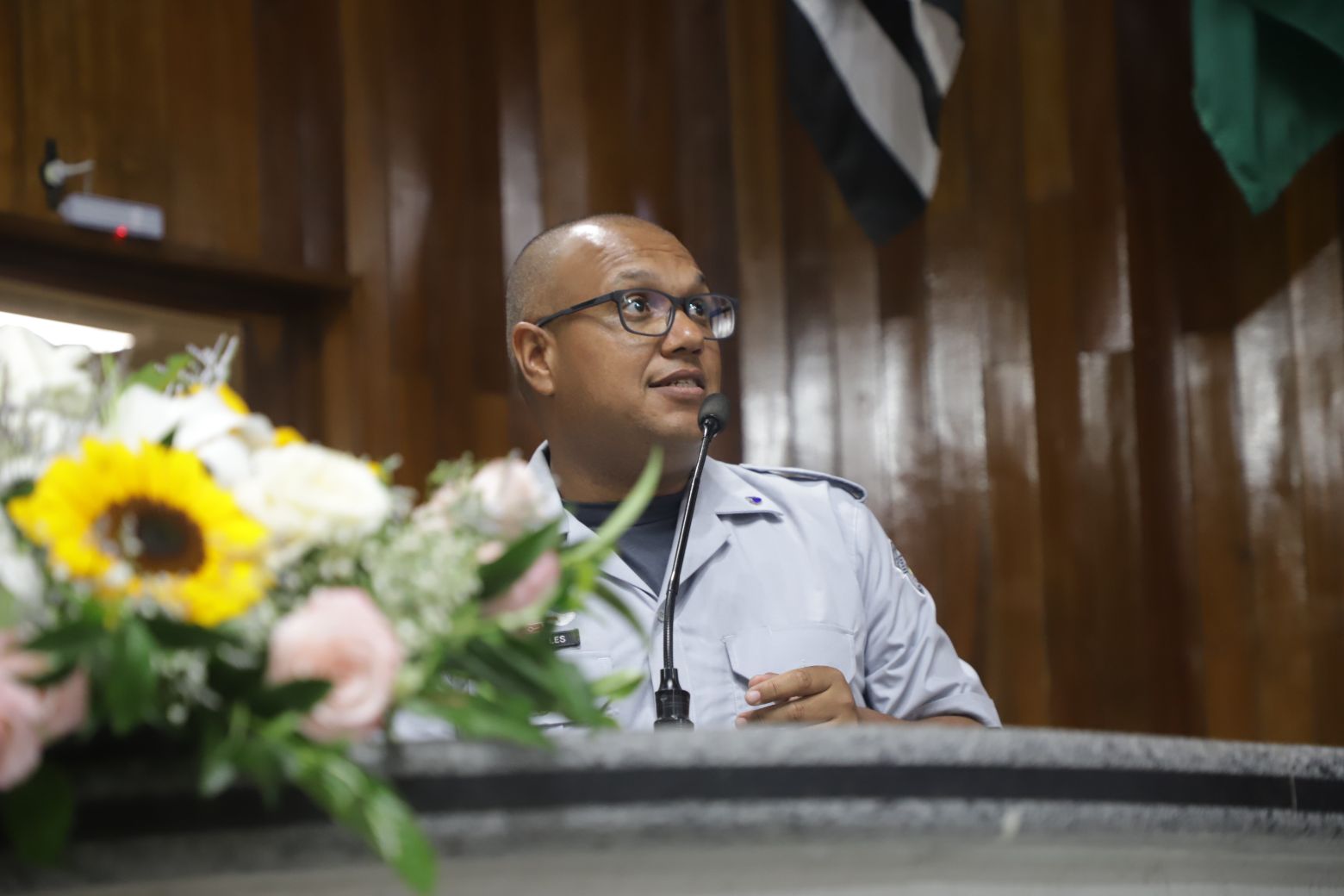 Além deles, compuseram a mesa diretiva o secretário municipal de Segurança, Gilberto Tsutomu Ito, — representando a prefeita Mara Bertaiolli (PL) —, o comandante do CPAM-12 (Comando de Policiamento de Área Metropolitano), coronel Rodrigo de Oliveira Carneiro, Denis Miragaia Cintra, delegado da DDM (Delegacia de Defesa da Mulher), — representando Margarete Barreto, delegada de polícia seccional de Mogi das Cruzes, o tenente-coronel Alexandre Zakir, comandante do 17º Batalhão da PM, o primeiro-tenente Edson Alves de Lima, comandante do 2º Pelotão 5ª Companhia de Policiamento Ambiental, primeiro-tenente Marcelo dos Santos Myiatake, do 17º Grupamento do Corpo de Bombeiros de Mogi — representando o tenente-coronel Rodrigo Barelli, o segundo-tenente Eduardo Elizeu Vicente Filho, comandante do Pelotão Rodoviário do Alto Tiete, e Marcelo Inocêncio, presidente da OAB/Mogi das Cruzes.